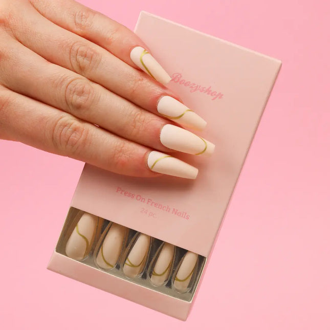 • + Free gift Boozyshop Press On French Nails Nude Goldstrike Boozyshop Press On French Nails Nude Goldstrike
