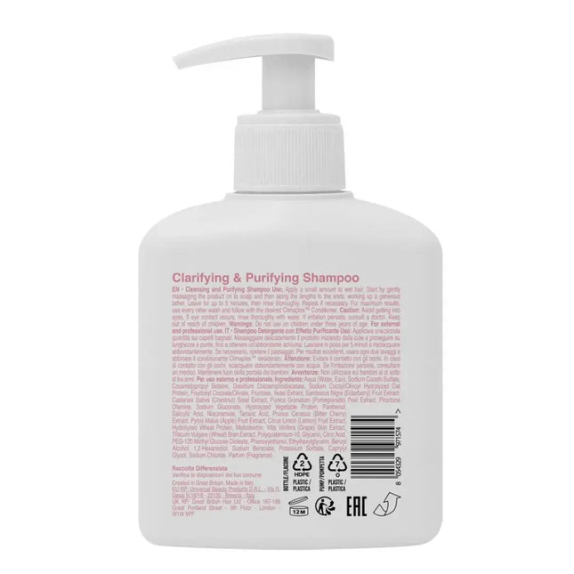 Une routine capillaire saine commence par un bon nettoyage. Le shampooing clarifiant est essentiel pour éliminer l’accumulation de produit, l’excès de sébum et les impuretés qui s’accumulent sur votre cuir chevelu et vos cheveux au fil du temps. Ce shampooing nettoie en profondeur et laisse vos cheveux frais, propres et éclatants. Que vous utilisiez régulièrement des produits coiffants ou que vous ayez simplement besoin d'un rafraîchissement, le shampoing clarifiant est un élément essentiel de votre routine de soins capillaires.