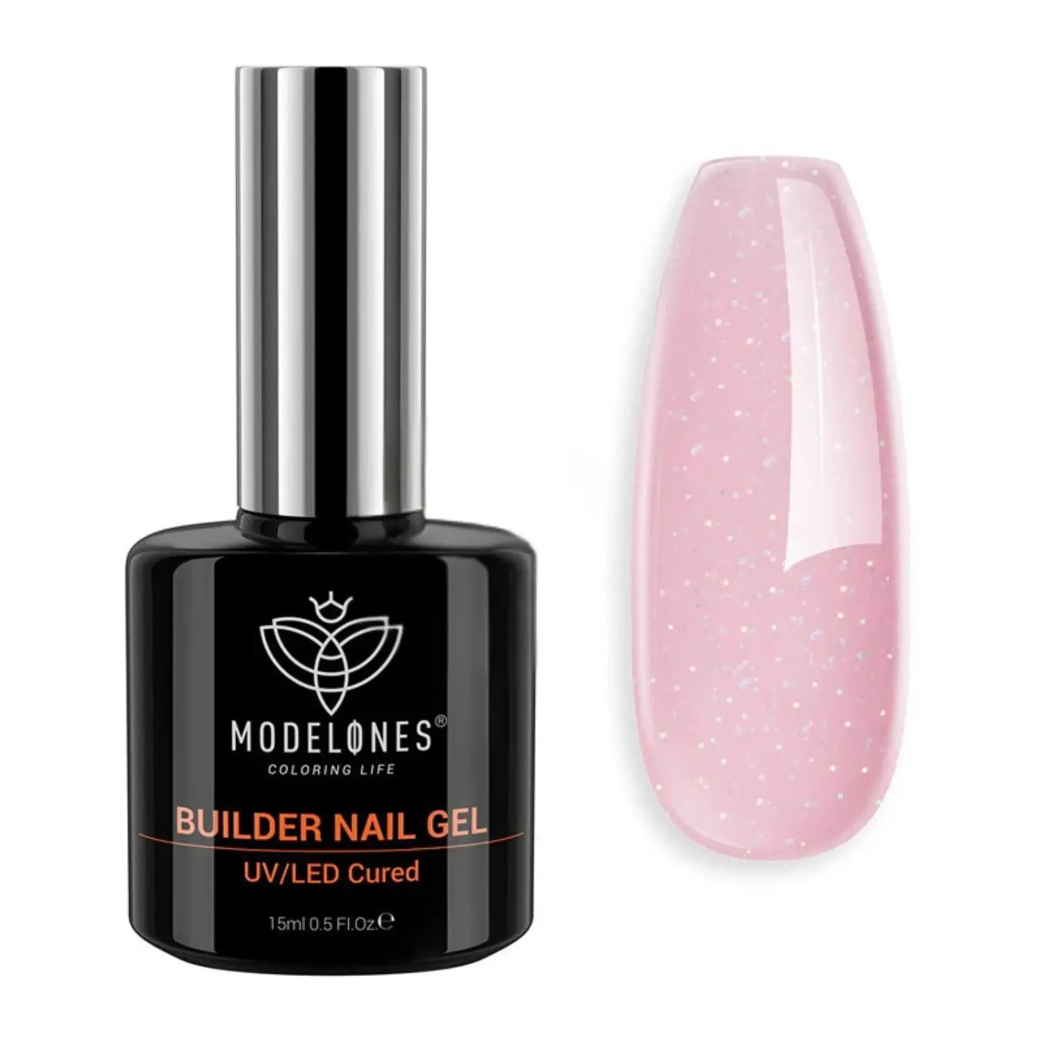 Le Modelones 8-in-1 Builder Nail Gel Nude Pink Glitter est le gel tout-en-un idéal pour créer des ongles solides, brillants et ultra polyvalents. Cette formule innovante réunit huit fonctions dans un seul pot, vous permettant de répondre à tous vos besoins ongulaires : renforcement, extension, fixation de tips ou nail art.