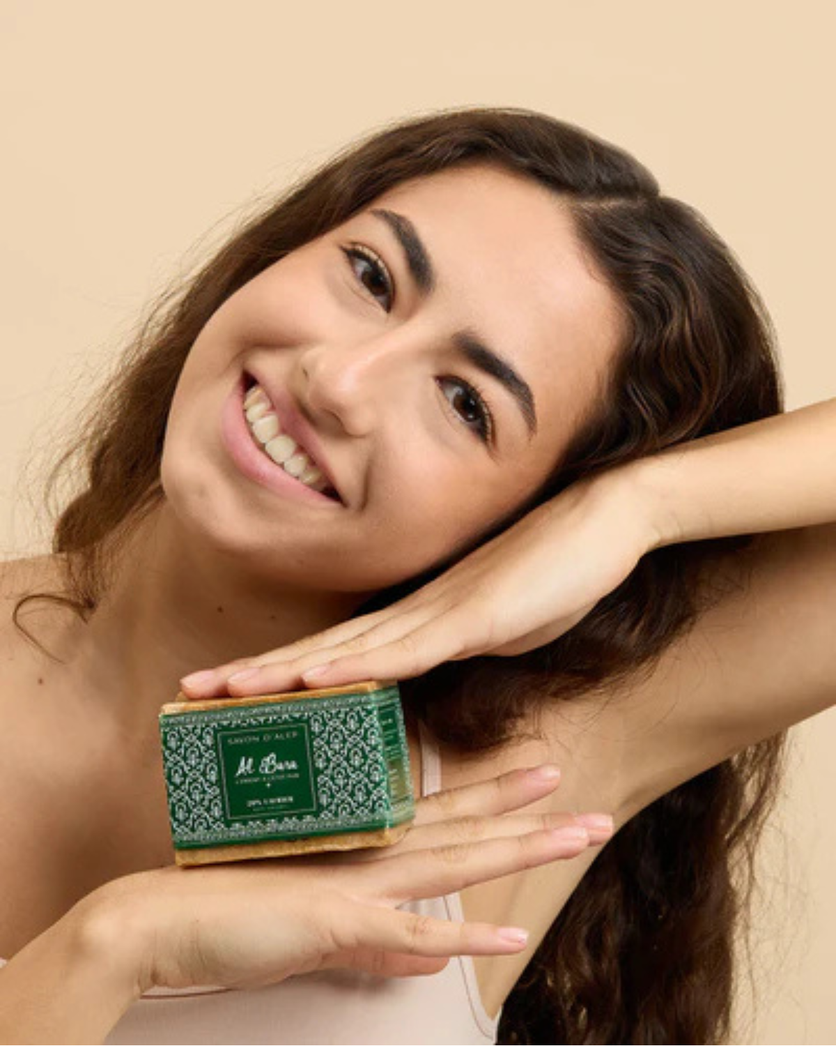 Le Al Bara Aleppo Zeep Olijf + 20% Laurierbesolie est un savon doux et polyvalent pour toute la famille. Fabriqué artisanalement à Alep selon une tradition ancestrale, ce savon 100 % naturel associe de l’huile d’olive de première pression nourrissante à 20 % d’huile de baie de laurier purifiante, un équilibre parfait pour une utilisation quotidienne sur le visage et le corps.