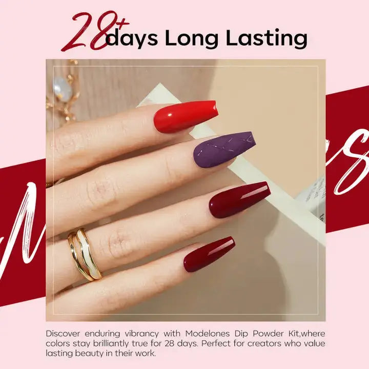 Le Modelones All-In-One Dip Powder Kit Blood Plum est un coffret complet de 19 pièces pour créer en un rien de temps de magnifiques manucures dip powder profondes et brillantes. Les teintes riches Blood Plum vont des crèmes douces aux paillettes scintillantes, idéales pour composer des looks à la fois classiques, chics ou glamours. Grâce à son application facile et à son séchage rapide, ce kit est parfait pour les débutantes comme pour les passionnées expérimentées.