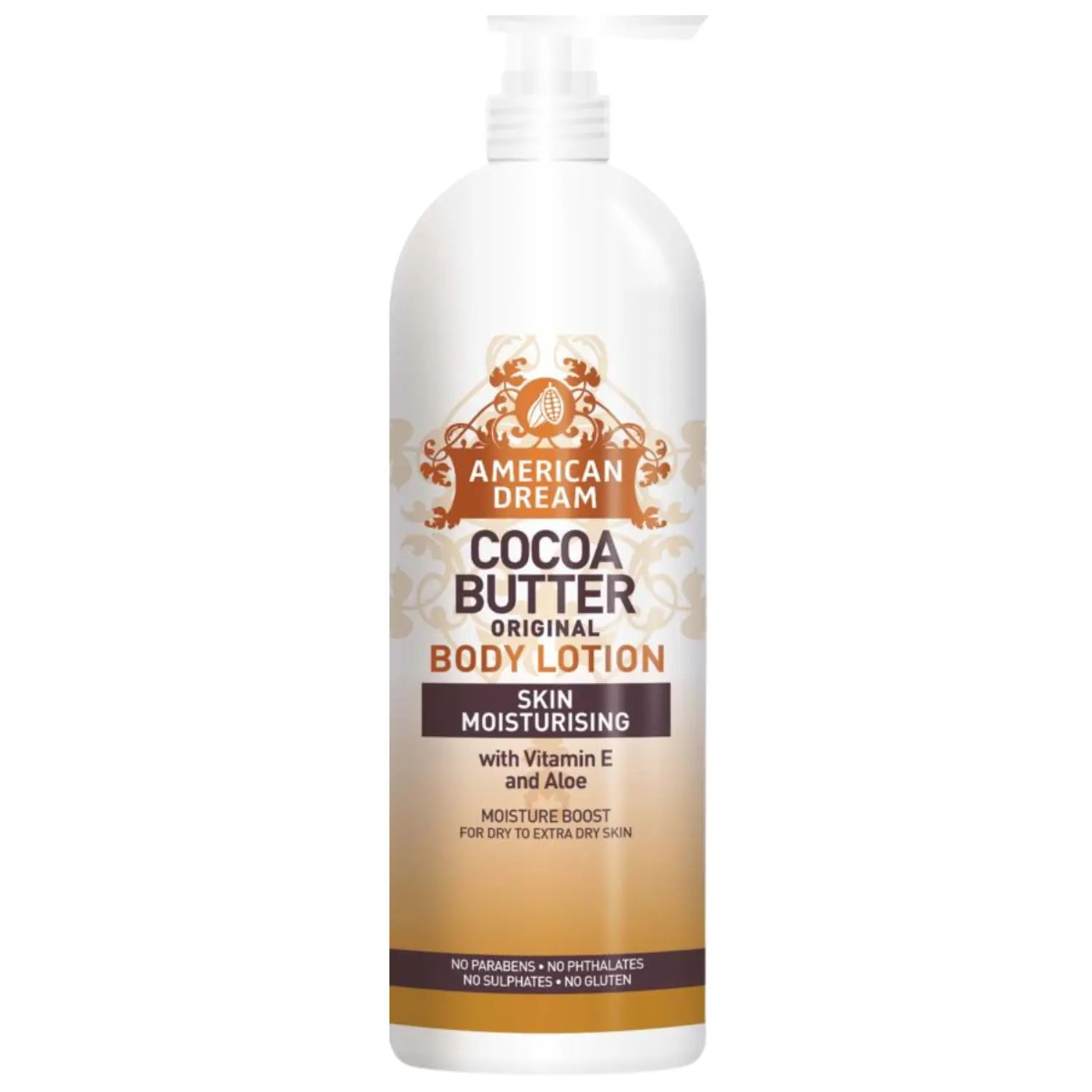 Vous souffrez d’une peau extrêmement sèche ou sujette aux démangeaisons ? La American Dream Cocoa Butter Body Lotion Original est votre sauveur. Cette lotion corporelle best-seller revient avec une formule améliorée, enrichie d’ingrédients ultra-nourrissants comme du beurre de cacao issu de sources éthiques, du beurre de karité et de la vitamine E : tout ce dont votre peau a besoin pour passer d’une peau squameuse à une peau douce comme de la soie.