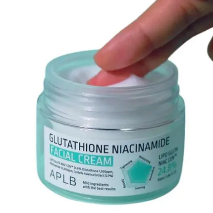 La APLB Glutathione Niacinamide Facial Cream est votre solution ultime pour une peau éclatante et hydratée ! Cette crème hydratante est formulée avec des ingrédients puissants comme le glutathion et la niacinamide, qui confèrent des propriétés antioxydantes et éclaircissantes pour aider votre peau à briller. La Centella asiatica et l'adénosine apaisent la peau tout en procurant des bienfaits anti-âge, laissant votre peau fraîche et jeune.