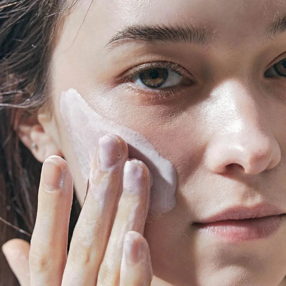 - En nettoyant quotidien : faire mousser une petite quantité avec de l’eau et masser doucement sur le visage humide. Rincer à l’eau tiède.