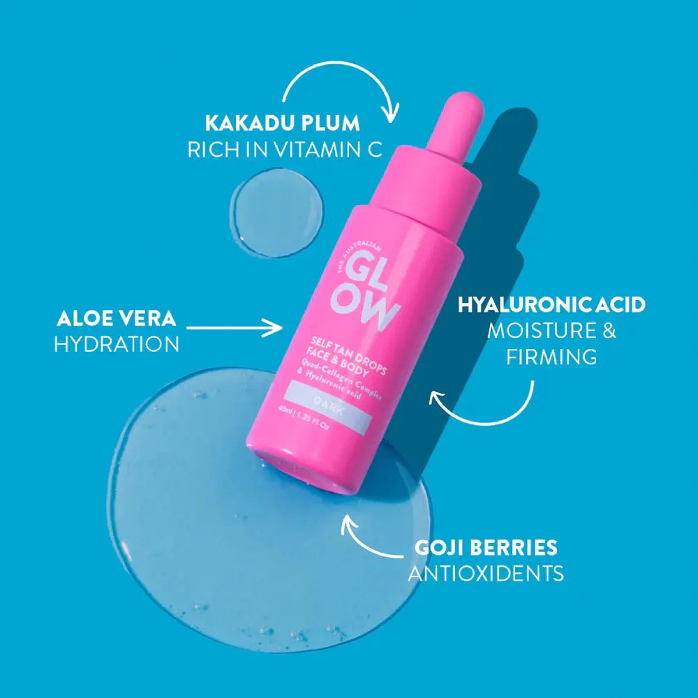 Les Australian Glow Self Tan Drops Medium sont parfaites si tu veux contrôler totalement ton glow. Ces gouttes autobronzantes intelligentes se mélangent facilement à ta crème hydratante préférée pour développer un joli hâle naturel pendant ta routine skincare.
