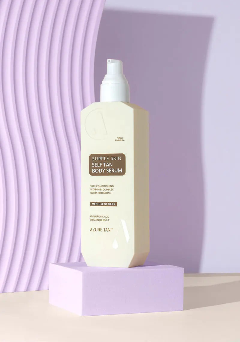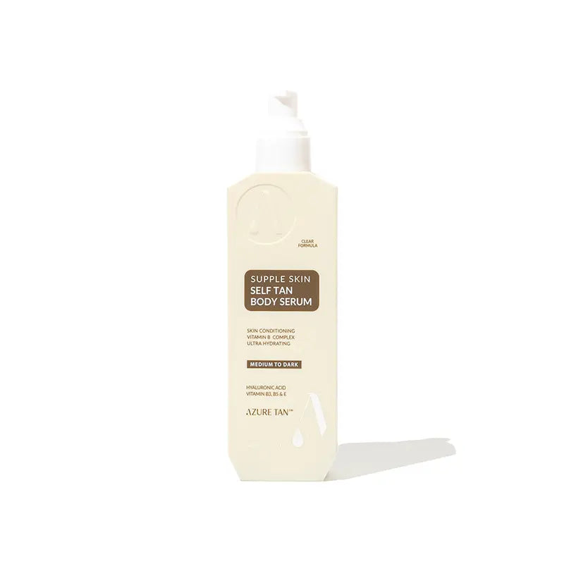 Le Azure Tan Supple Skin Body Tanning Serum Medium/Dark est ton allié secret pour une peau soyeuse et un éclat hâlé naturel. Ce sérum corporel léger hydrate intensément, assouplit la peau et développe progressivement un bronzage sans l’effet collant des lotions ou mousses autobronzantes classiques.