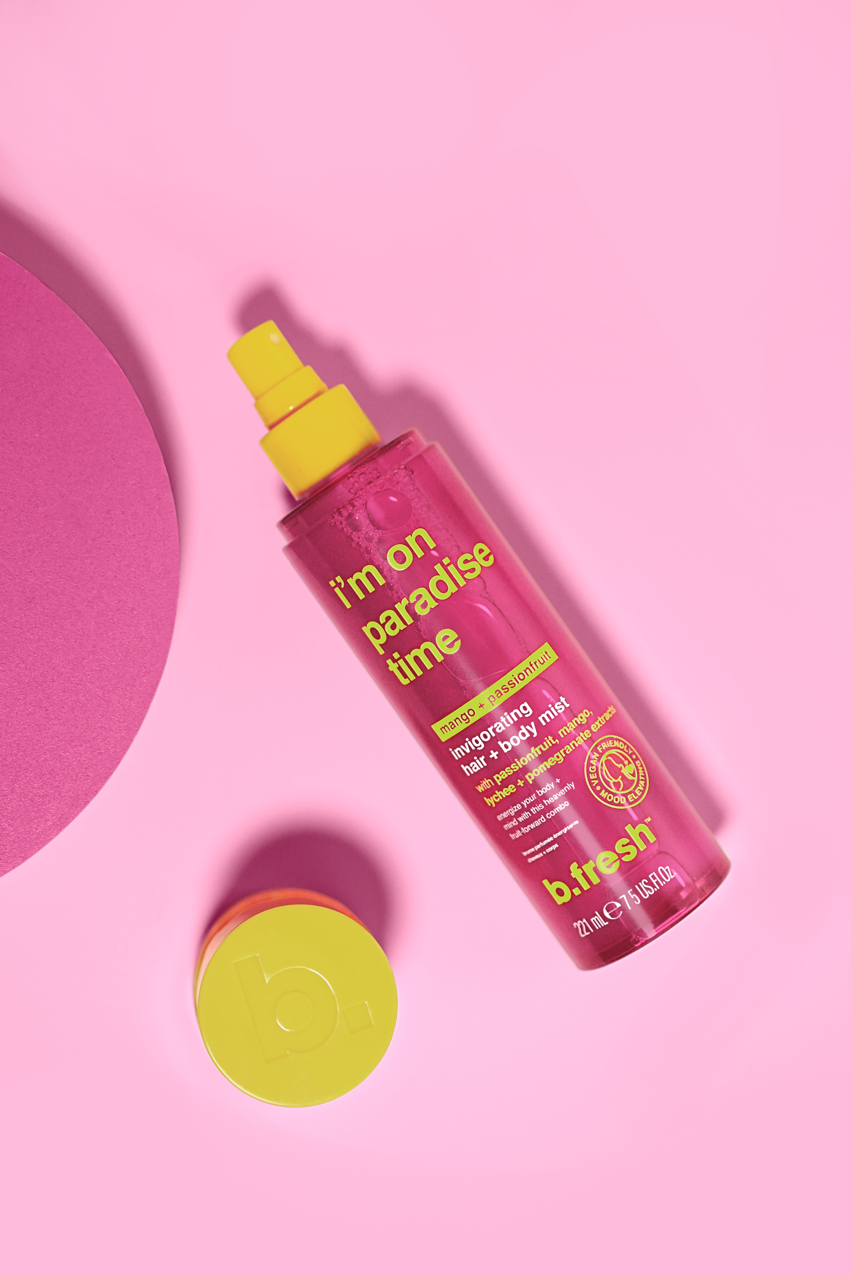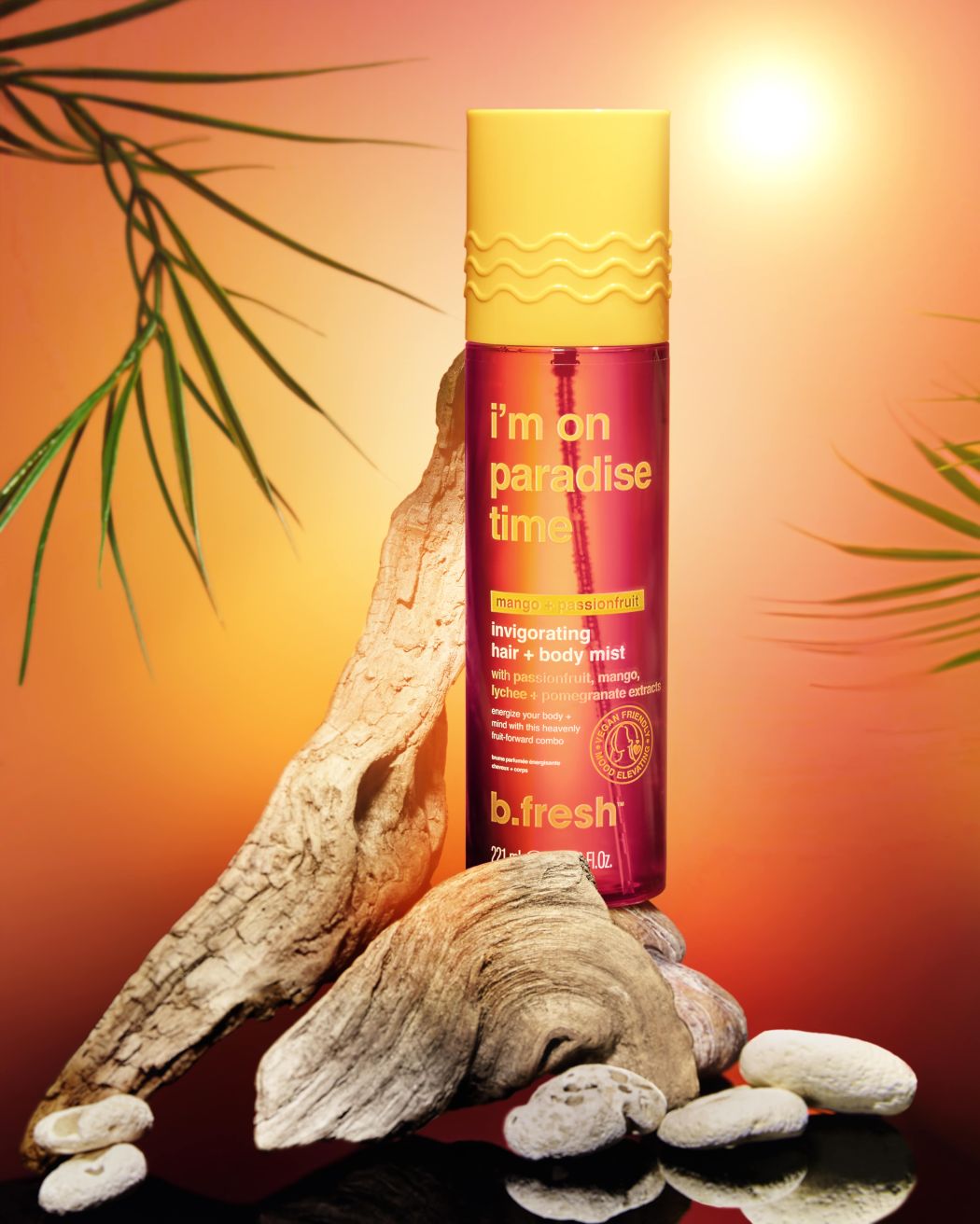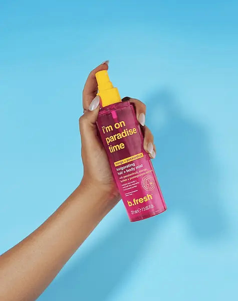Le B.fresh I'm On Paradise Time est le coup de boost ultime pour vos cheveux et votre peau ! Cette brume rafraîchissante pour les cheveux et le corps, enrichie en extraits de fruit de la passion et de mangue, fait briller vos cheveux, revitalise votre peau et vous apporte une sensation d'énergie immédiate. Son délicieux parfum tropical vous transporte instantanément en vacances et rend chaque journée plus ensoleillée !