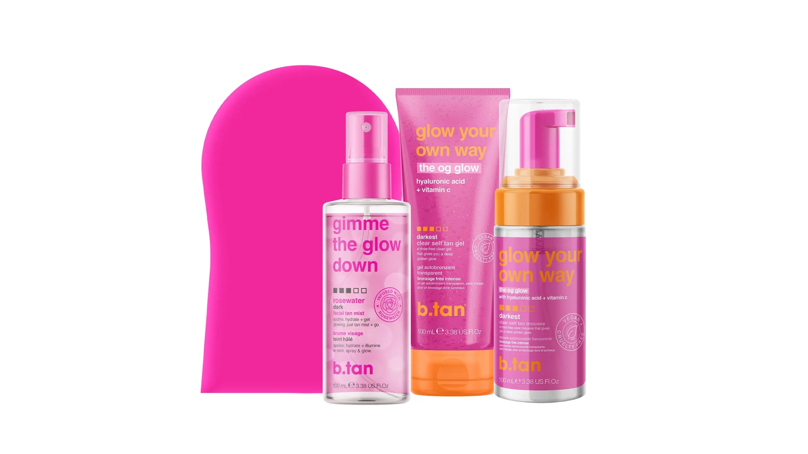 Water (Aqua, Eau), Alcohol Denat., Dihydroxyacetone, Ethoxydiglycol, Propylene Glycol, Polysorbate 20, Caprylyl Glycol, Potassium Sorbate, Hexylene Glycol, Xanthan Gum, Rosa Damascena (Rose) Water, Argania Spinosa (Argan) Kernel Oil, Cocos Nucifera (Coconut) Oil, Cucumis Sativus (Cucumber) Seed Oil, Macadamia Integrifolia (Macadamia) Seed Oil, Persea Gratissima (Avocado) Oil, Rosa Canina (Rosehip) Fruit Oil, Simmondsia Chinensis (Jojoba) Seed Oil, Vitis Vinifera (Grape) Seed Oil, Phenoxyethanol, Ascorbic Acid (Vitamin C), Tocopheryl Acetate (Vitamin E), Citric Acid, Fragrance (Parfum), Red 33 (Ci 17200).
