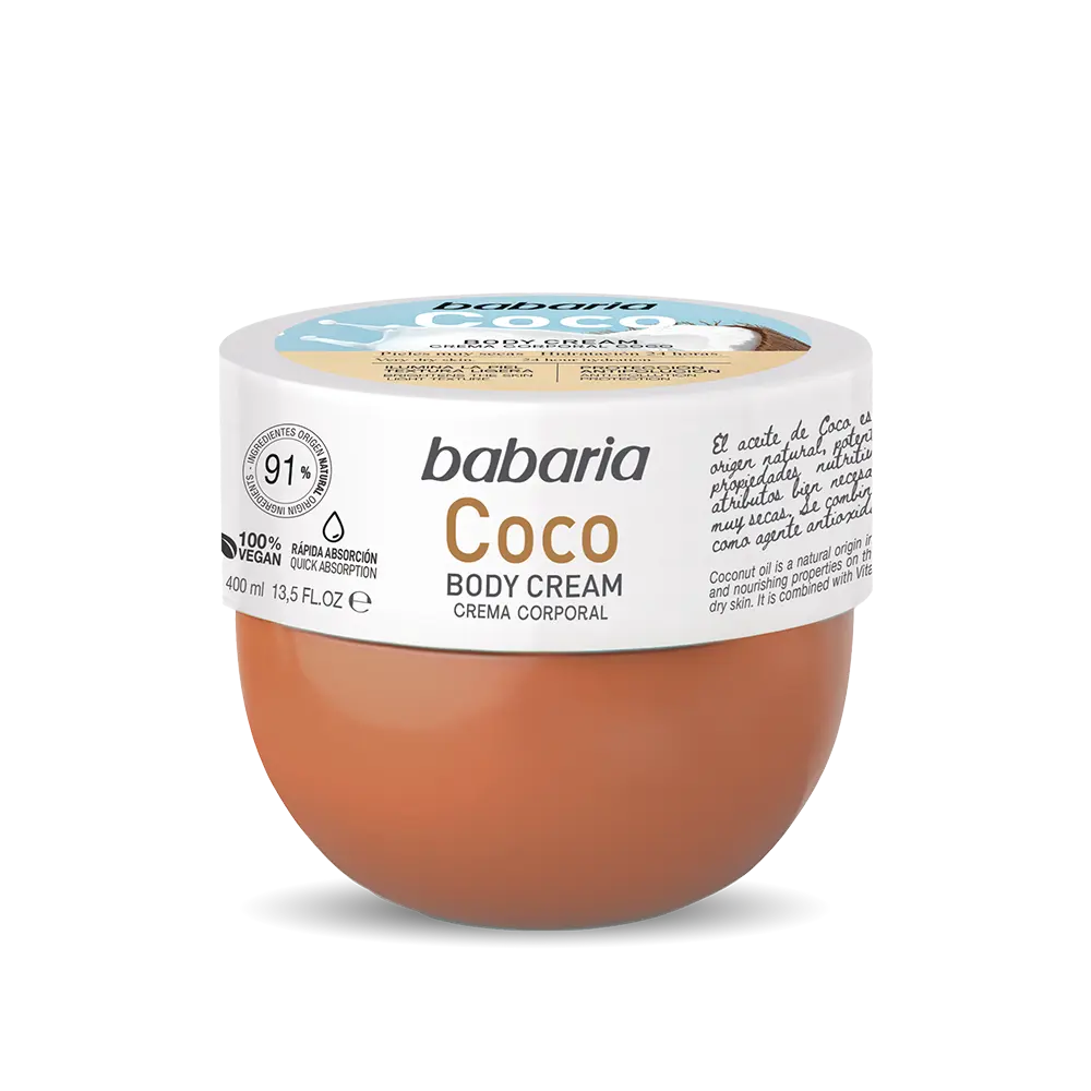 La Babaria Coconut Body Cream est ton nouvel indispensable pour une peau intensément nourrie et douce comme de la soie. Cette crème corporelle onctueuse est enrichie en huile de coco et en vitamine E, qui assurent ensemble une hydratation en profondeur et un éclat sain. Parfaite pour les peaux sèches, mais aussi idéale après une journée au soleil ou durant les journées froides d'hiver.