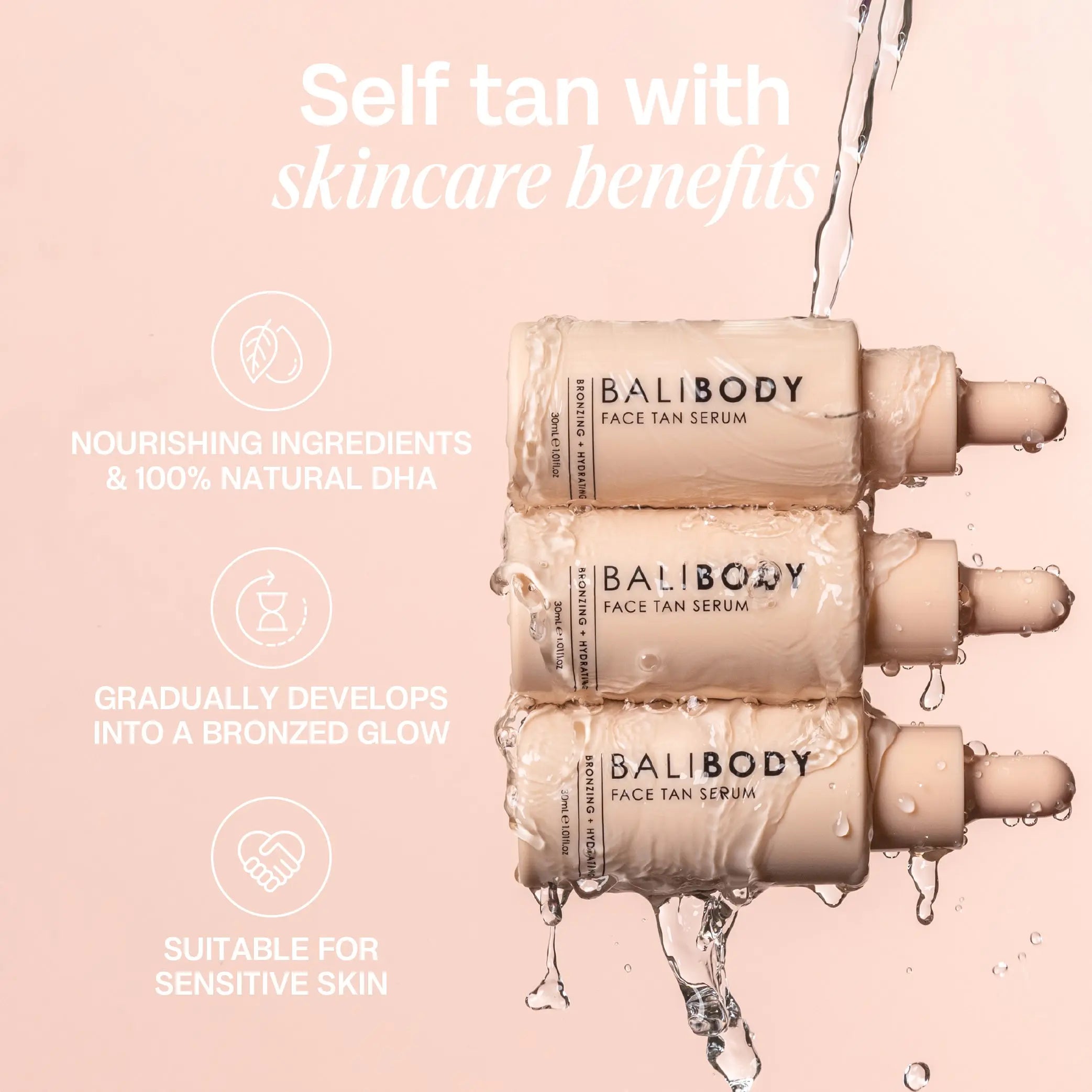 Le Bali Body Face Tan Serum est un sérum avec autobronzant pour votre visage, qui convient à tous les types de peau. Ce sérum léger n'irrite pas votre peau et n'obstrue pas vos pores !