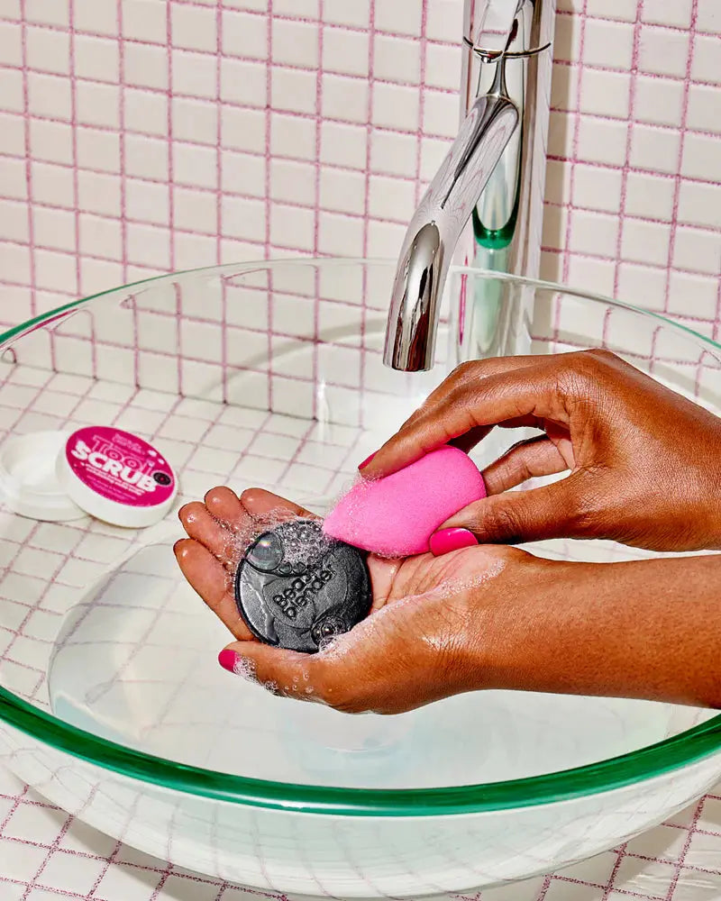Le Beautyblender Toolscrub Hand, Sponge & Brush Cleanser Charcoal 28 gr. est l’ultime deep-cleaner pour vos outils de maquillage. Ce savon solide multitâche, avec du charcoal actif et des exfoliating grains naturels, élimine maquillage, saleté et bactéries en un seul geste rapide. L’effet detox du charcoal donne à vos sponges et brushes un nouveau départ et les aide à rester beaux plus longtemps. Pas besoin de tapis en silicone ni de gadgets supplémentaires: juste un nettoyage pur et efficace.