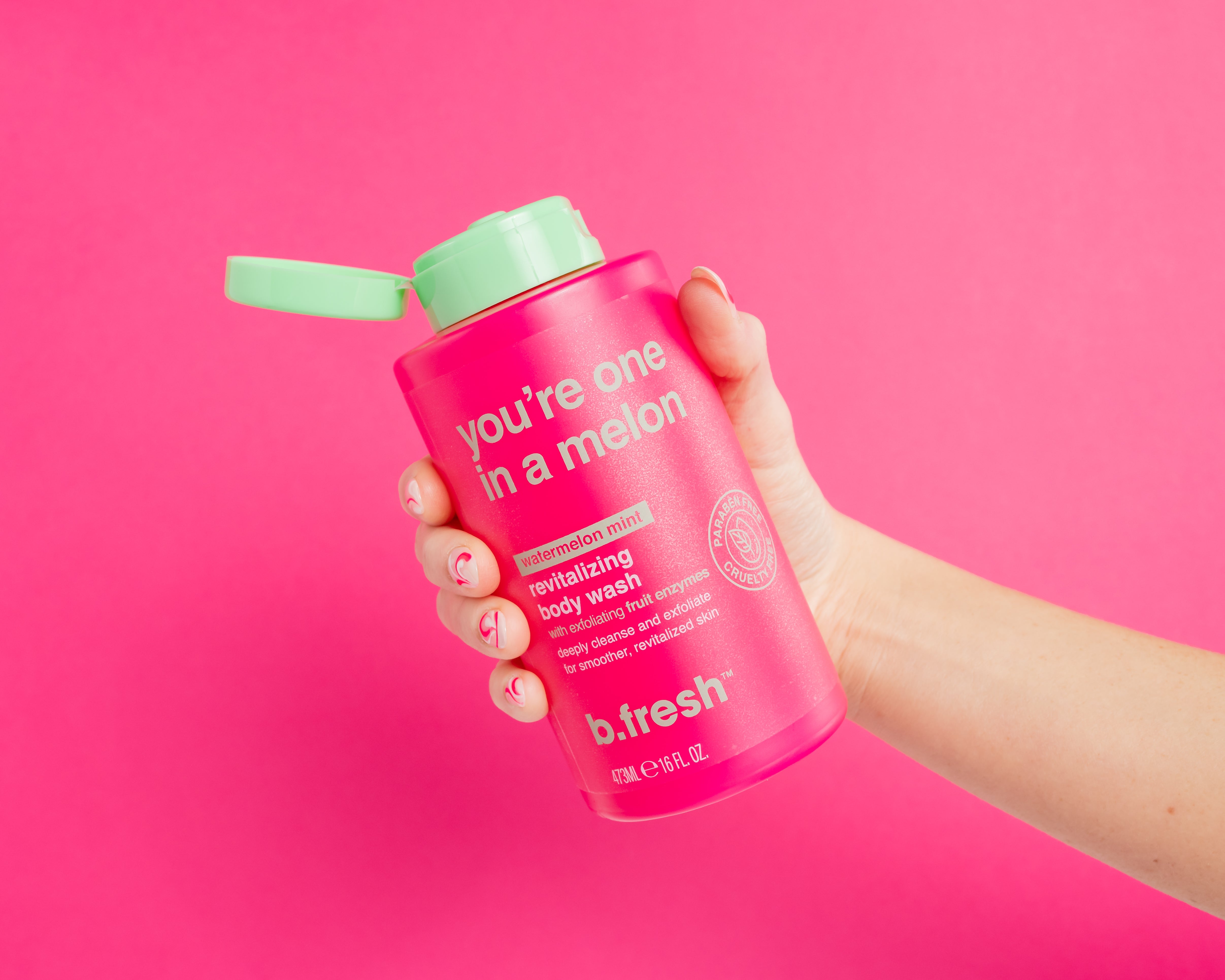 Découvrez la sensation rafraîchissante de la pastèque et de la menthe et commencez chaque journée frais et revigoré avec le nettoyant pour le corps revitalisant b.fresh you're one in a melon. Transformez votre douche quotidienne en une expérience rafraîchissante et profitez d'une peau comme neuve !
