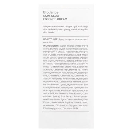 Water, Hydrogenated Polydecene, Butylene Glycol, Isononyl Isononanoate, Polyglyceryl-4 Oleate, Niacinamide, Polyglyceryl-6 Oleate, Polyhydroxystearic Acid, Magnesium Sulfate, Sorbitan Sesquioleate, Dipropylene Glycol, Panthenol, Betaine, Bifida Ferment Filtrate, Hydrogenated Lecithin, Cetearyl Alcohol, 1,2-Hexanediol, Stearic Acid, Sodium Hyaluronate, Ceramide NP, Ceramide NS, Hydroxypropyltrimonium Hyaluronate, Phytosphingosine, Cholesterol, Ceramide AS, Ceramide AP, Sodium Acetylated Hyaluronate, Hydrolyzed Hyaluronic Acid, Lactobacillus Ferment, Lactobacillus Ferment Lysate, Hyaluronic Acid, Sodium Hyaluronate Crosspolymer, Hydrolyzed Sodium Hyaluronate, Potassium Hyaluronate, Ceramide EOP, Iris Florentina Root Extract, Cucumis Melo (Melon) Fruit Extract, Rosa Damascena Flower Water, Pyrus Communis (Pear) Fruit Extract, Hedera Helix (Ivy) Leaf/Stem Extract, Adenosine, Dipotassium Glycyrrhizate, Hydroxyacetophenone, Caprylyl Glycol, Tocopherol, Ethylhexylglycerin, Disodium EDTA