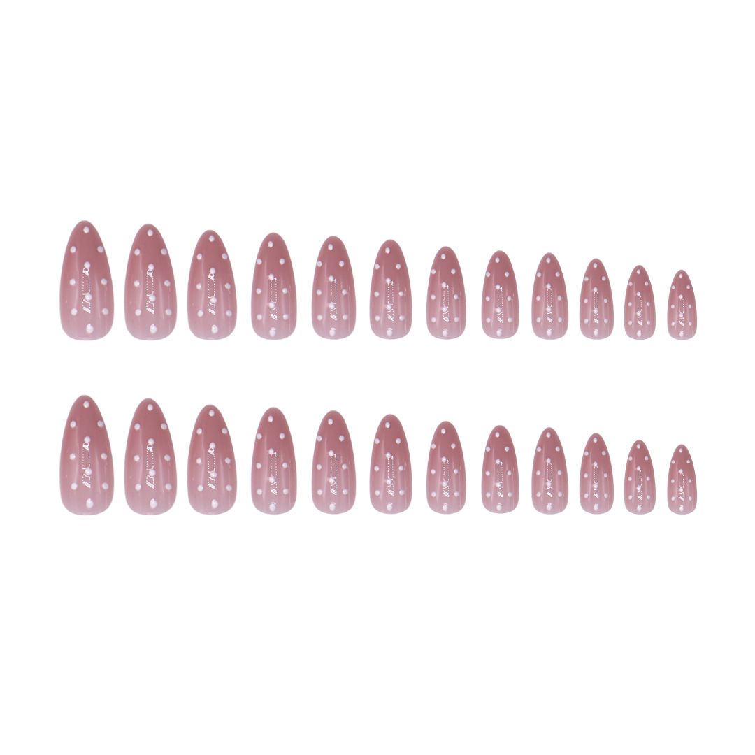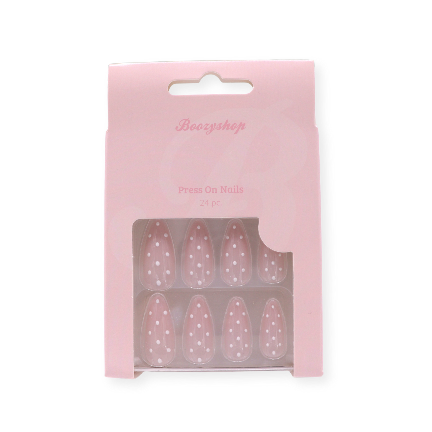 Les Boozyshop 24 pcs Press On Nails Polka Dots sont la solution parfaite pour de magnifiques ongles en un rien de temps. Ces faux ongles sont non seulement élégants, mais présentent également un design polka dot qui donne à tes ongles un look raffiné. Offre-toi une manucure rapide avec ce set de press on nails composé de 24 pièces en 12 tailles différentes. Chaque ongle est numéroté de 0 à 11, ce qui facilite le choix de la taille idéale. Le set comprend également une colle à ongles.