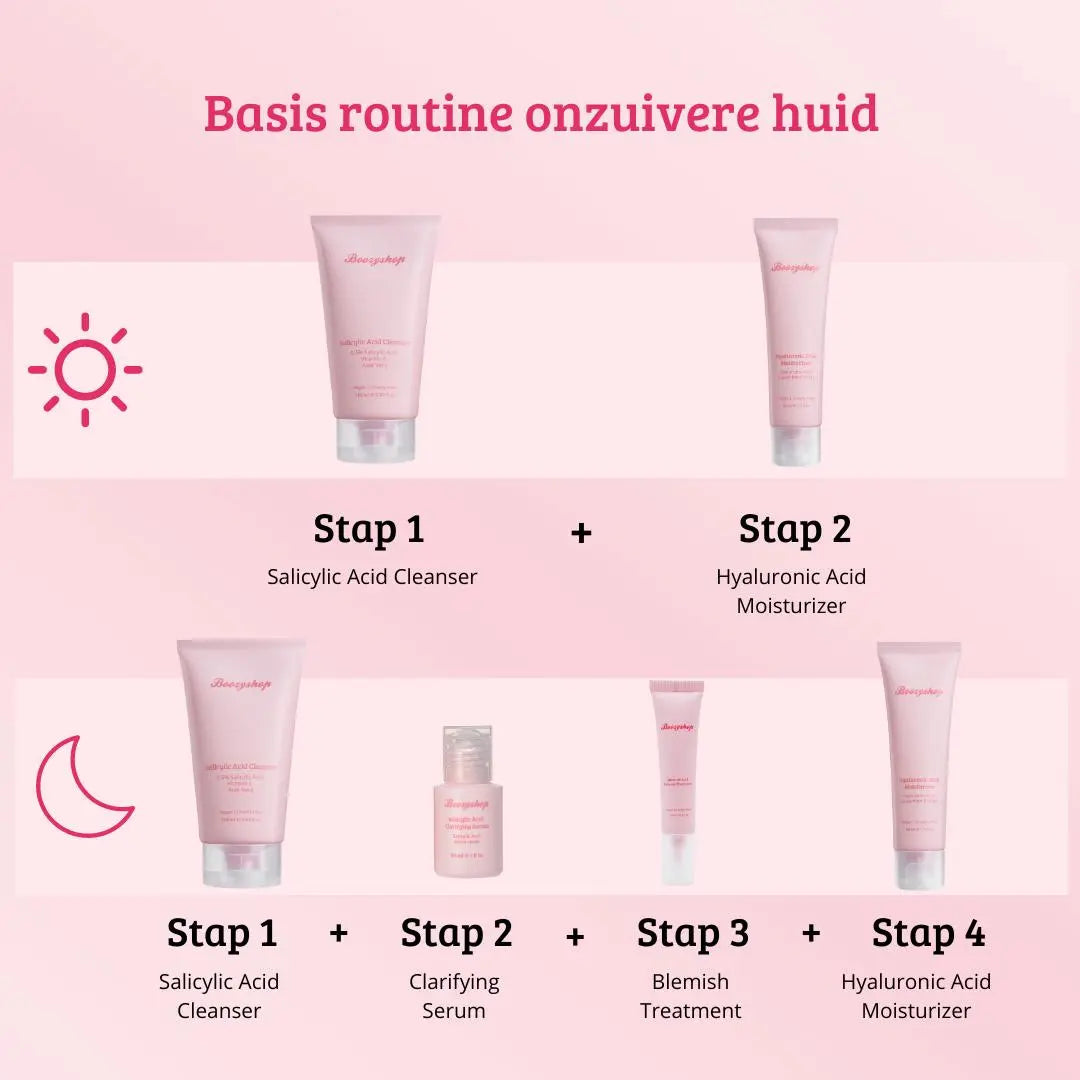 Le Boozyshop Basic Routine Impure Skin est un ensemble complet contenant tous les éléments essentiels dont vous avez besoin pour réguler la production de sébum, éliminer l'excès de sébum et combattre les boutons et l'acné.