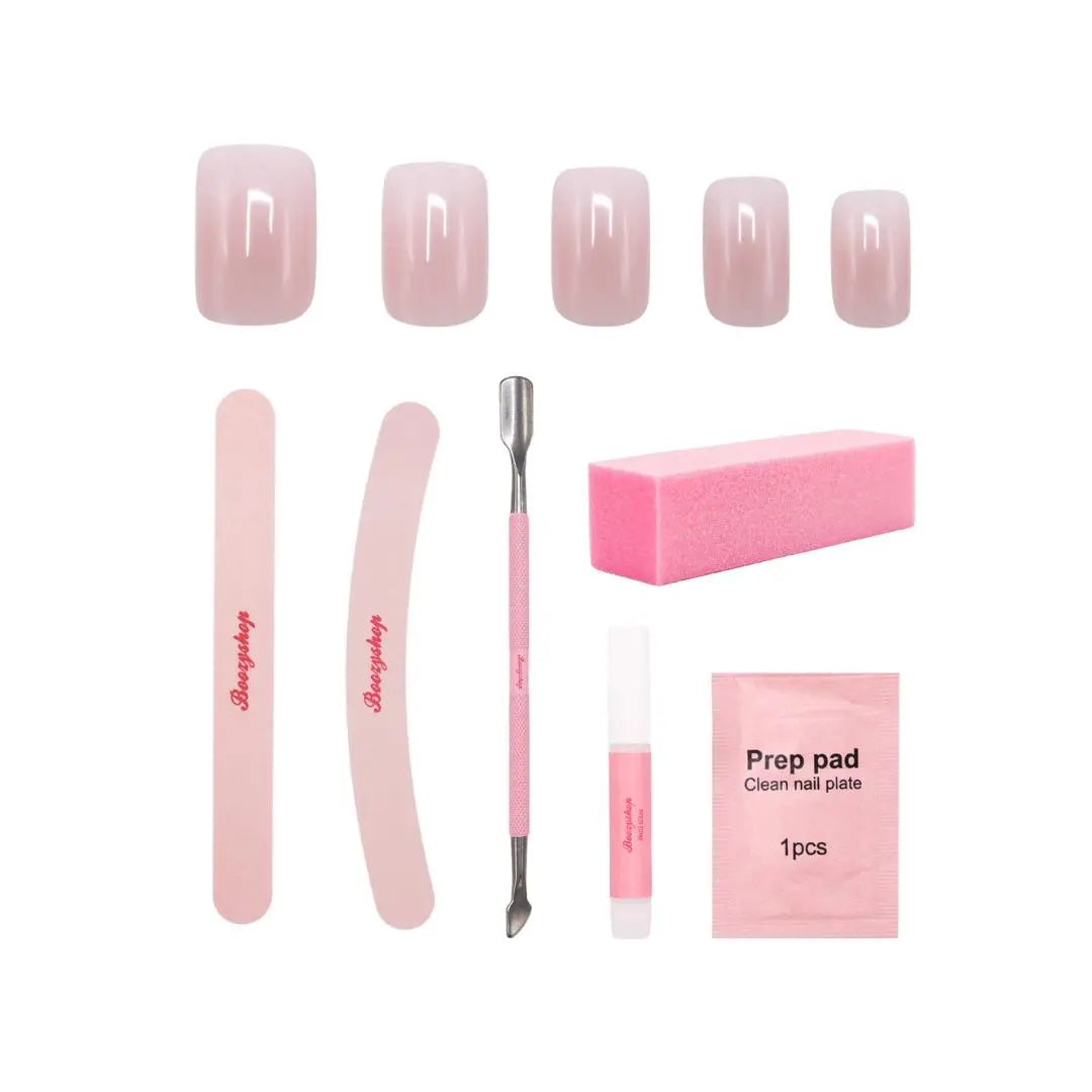 - Comprend des limes, des accessoires, de la colle à ongles et un tampon de préparation