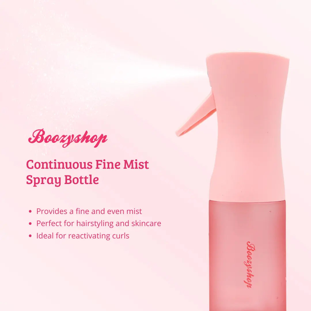 Le Boozyshop Continuous Fine Mist Spray Bottle est votre nouvel accessoire préféré pour une brume ultra-fine et uniforme. Idéal pour rafraîchir et coiffer vos cheveux, redonner vie à vos boucles ou appliquer votre toner préféré. Grâce à son design innovant, ce spray diffuse une brume constante sans fuite ni goutte, pour une application précise et maîtrisée à chaque utilisation.