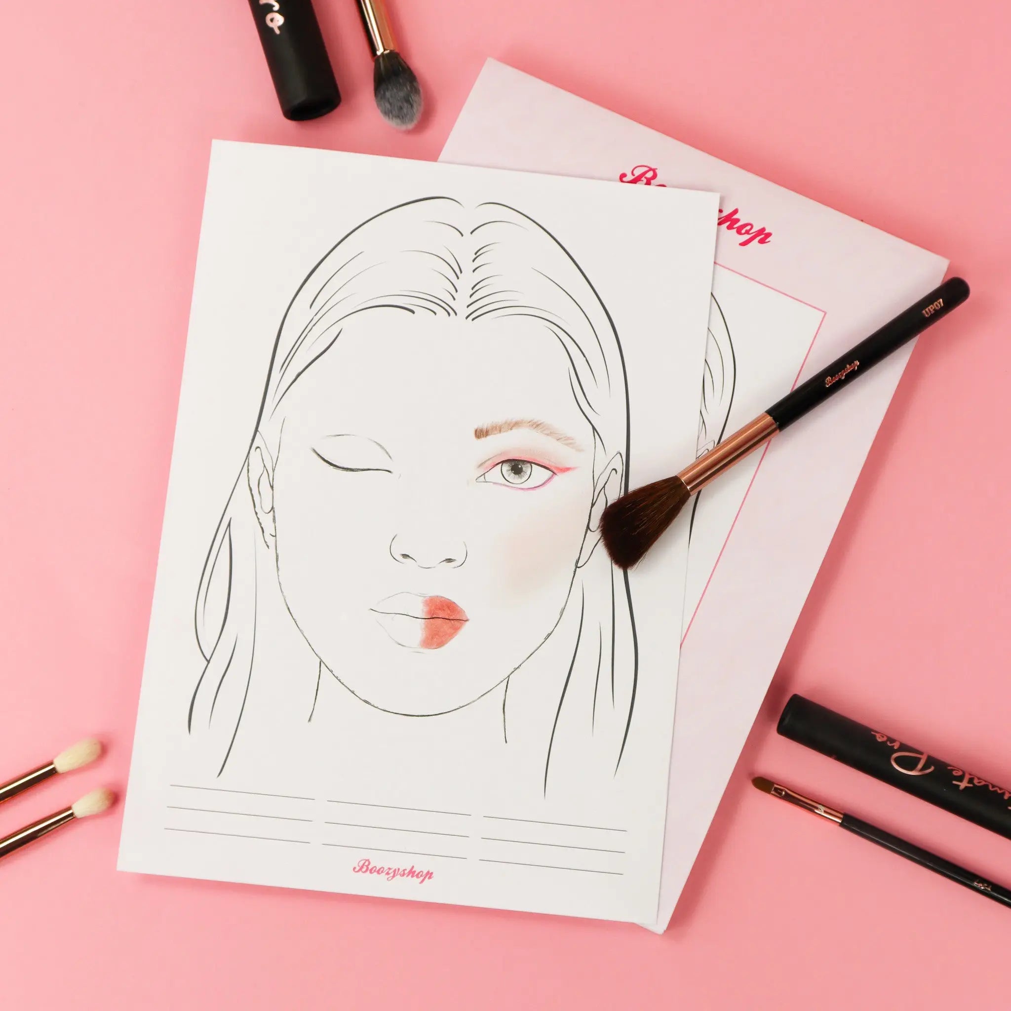 Boozyshop Facecharts Workbook 50 pcs. est un incontournable pour tous les maquilleurs et passionnés de maquillage! Laissez libre cours à votre créativité et réalisez les plus belles créations sur papier. Pour les MUA, les face charts sont un élément indispensable de votre kit, vous pouvez les utiliser pour préparer vos looks pour vos clients. Mais les tableaux de visages sont aussi très amusants pour un amateur de maquillage !