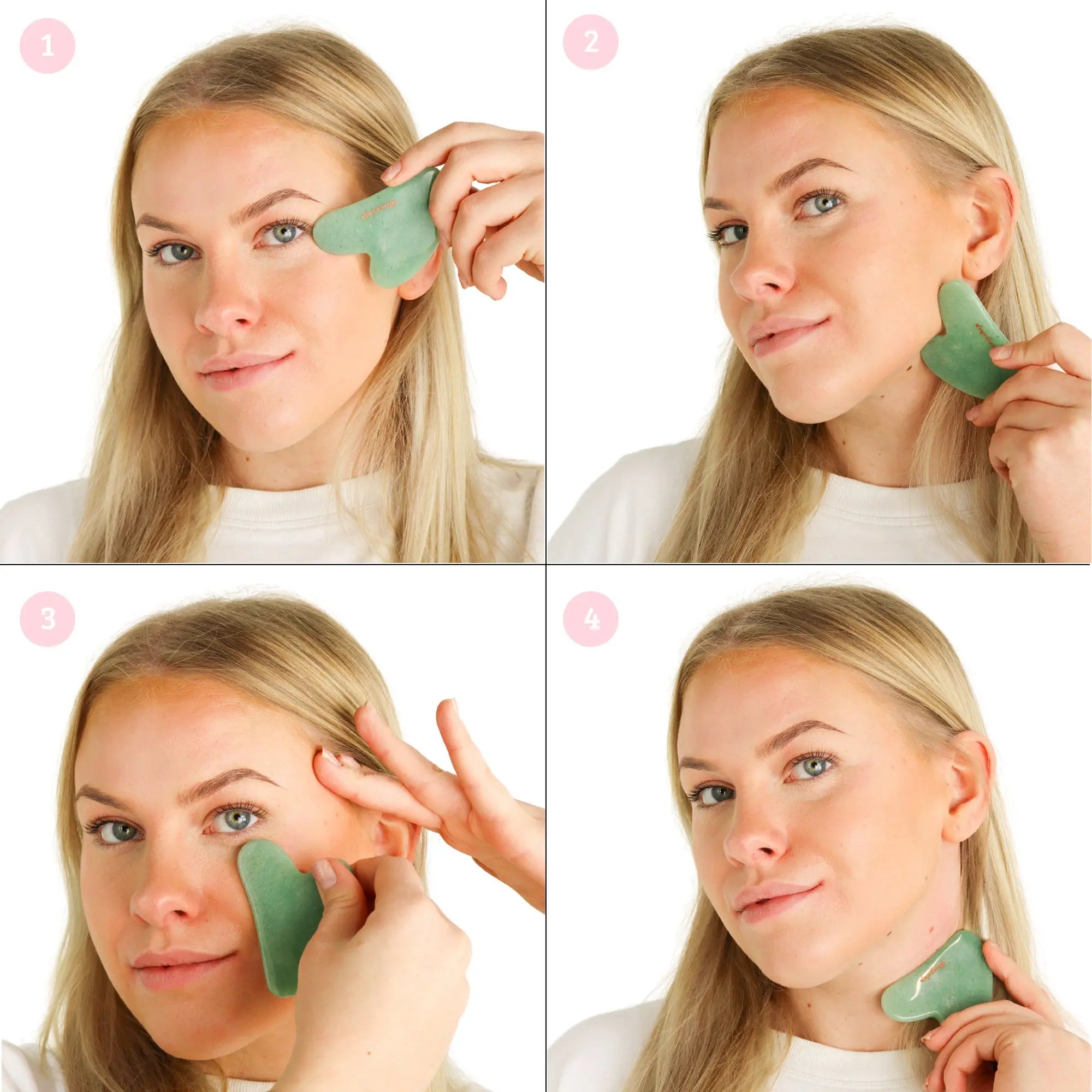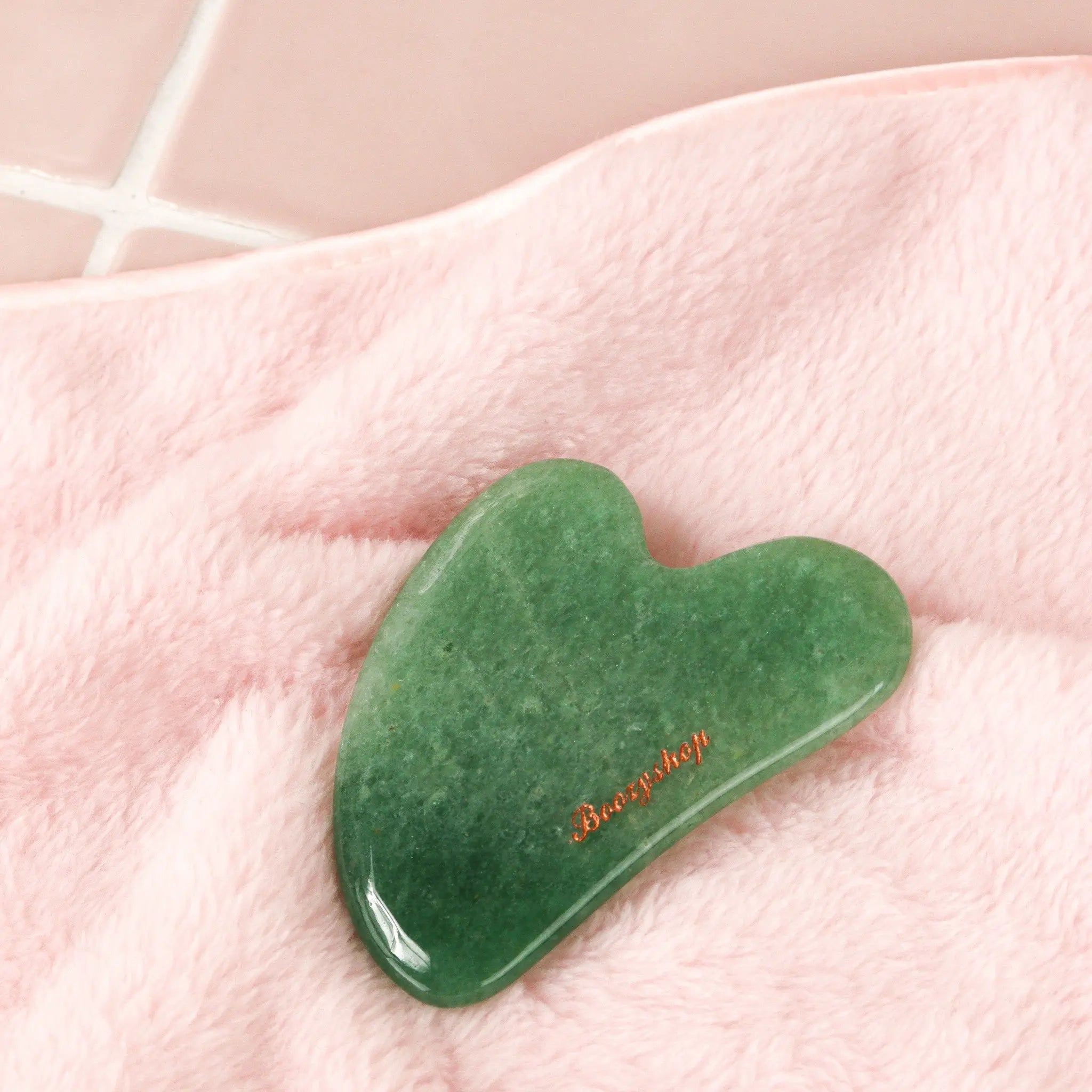 L'outil Boozyshop Jade Gua Sha est un outil de massage en pierre de jade connue pour ses propriétés liftantes. Cet outil vous aide à masser votre visage, stimule l'absorption des produits pour le visage et donne un effet lifting. La forme en V de cet outil est idéale pour masser et apaiser les pommettes et la mâchoire. Vous pouvez également utiliser ce Jade Gua Sha pour appliquer vos sérums ou lotions préférés.