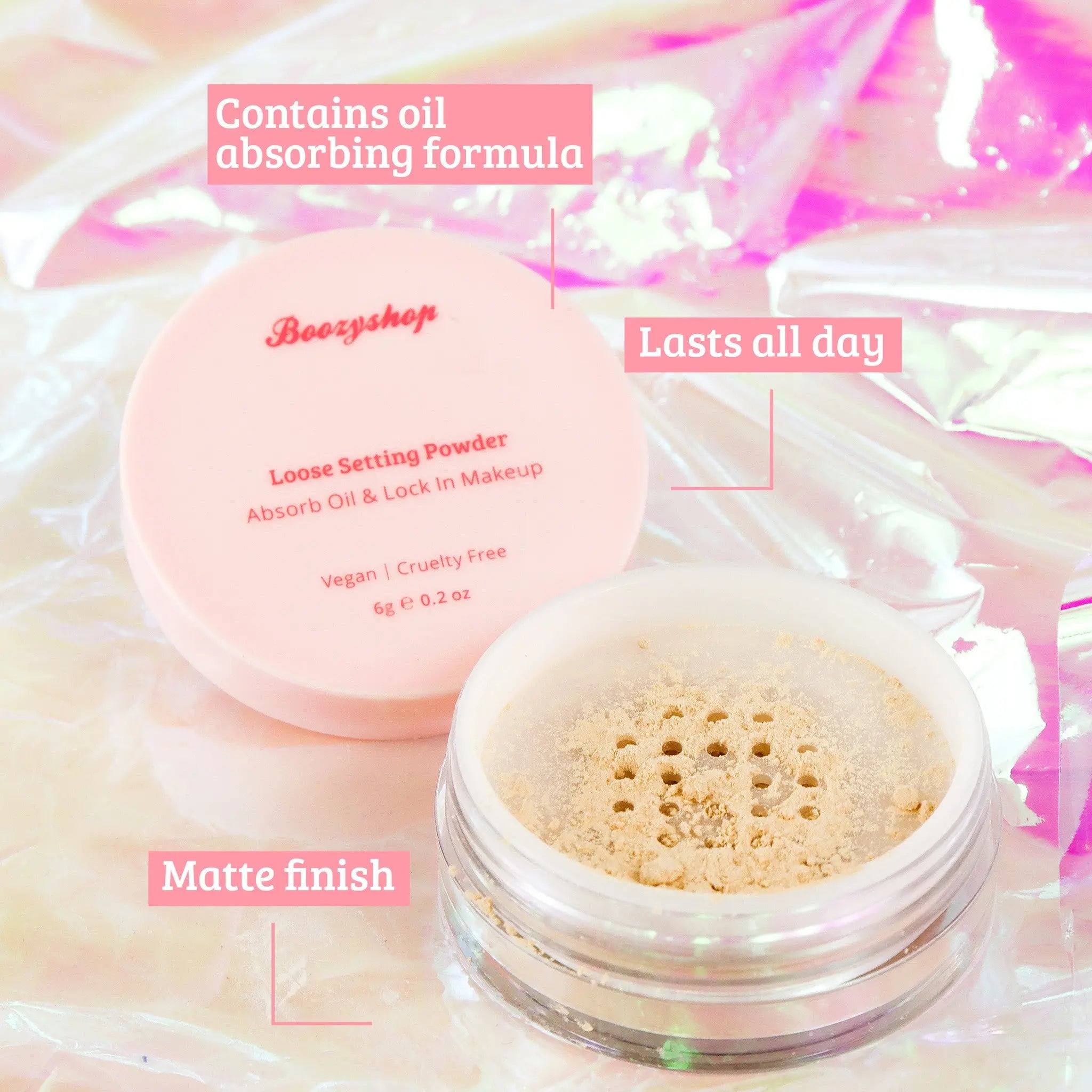 La Boozyshop Loose Setting Powder Banana est la clé d’un look maquillage parfait qui tient toute la journée. Cette poudre est la touche finale idéale de ta routine makeup. Sa texture légère et fine, avec une subtile teinte jaune pâle, convient particulièrement aux carnations moyennes à foncées.