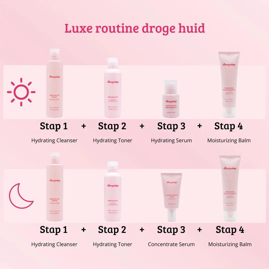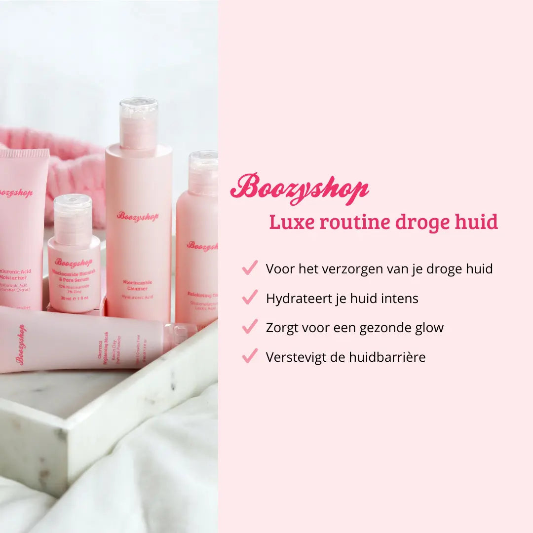 La Boozyshop Luxury Routine Dry Skin est une sélection de nos meilleurs produits de soin dont vous avez besoin pour hydrater intensément votre peau déshydratée, renforcer la barrière cutanée et lui assurer un éclat sain.