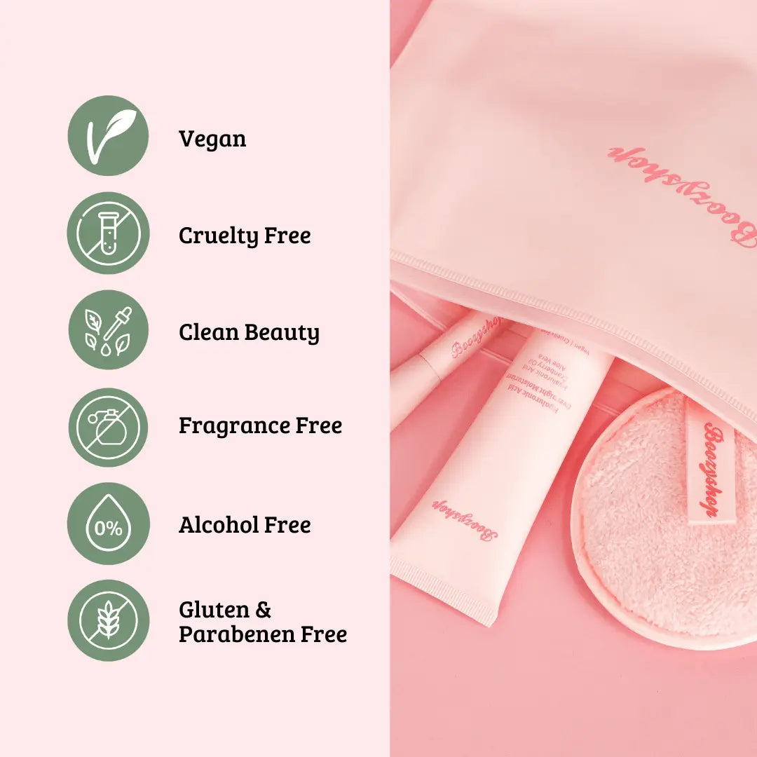 Chez Boozyshop, nous croyons en des soins de la peau accessibles à tous, quels que soient leur sexe, leur couleur de peau ou leur identité. Nous sommes fiers que tous nos produits soient végétaliens et non testés sur les animaux. Nous soutenons fermement les produits de beauté honnêtes, fabriqués à partir d’ingrédients naturels et exempts d’ingrédients controversés.