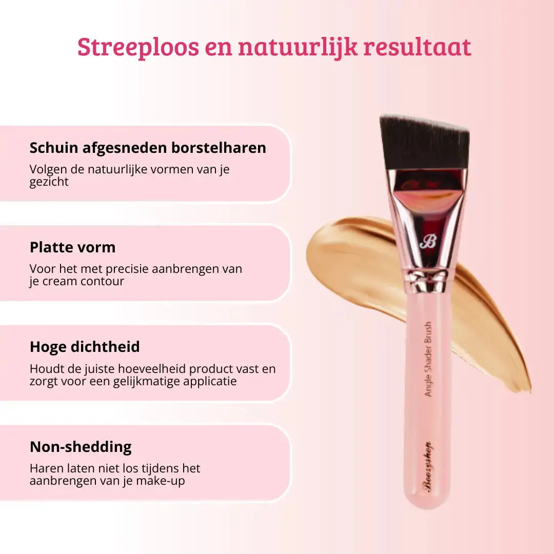 Vous cherchez un pinceau avec lequel vous pouvez appliquer votre crème contour ? Alors commandez le pinceau Boozyshop Pink & Rose Gold Angle Shader Brush maintenant!