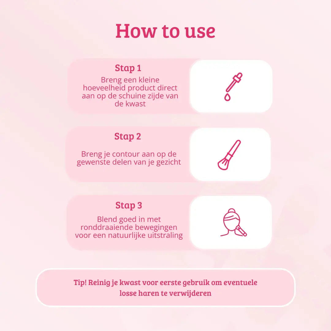 Ce pinceau a un beau manche rose tendre en combinaison avec une virole en or rose. Les fibres synthétiques ultra douces sont de la plus haute qualité et parfaites pour appliquer votre crème contour.