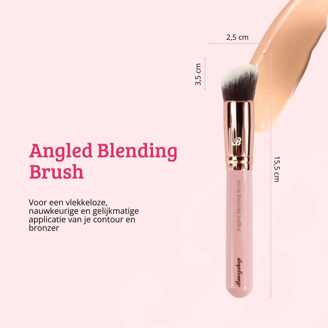 Le Boozyshop Pink & Rose Gold Angled Blending Brush est spécialement conçu pour appliquer avec précision ton contour et ton blush. Ce pinceau suit les contours de ton visage pour créer facilement ce look sculpté parfait.