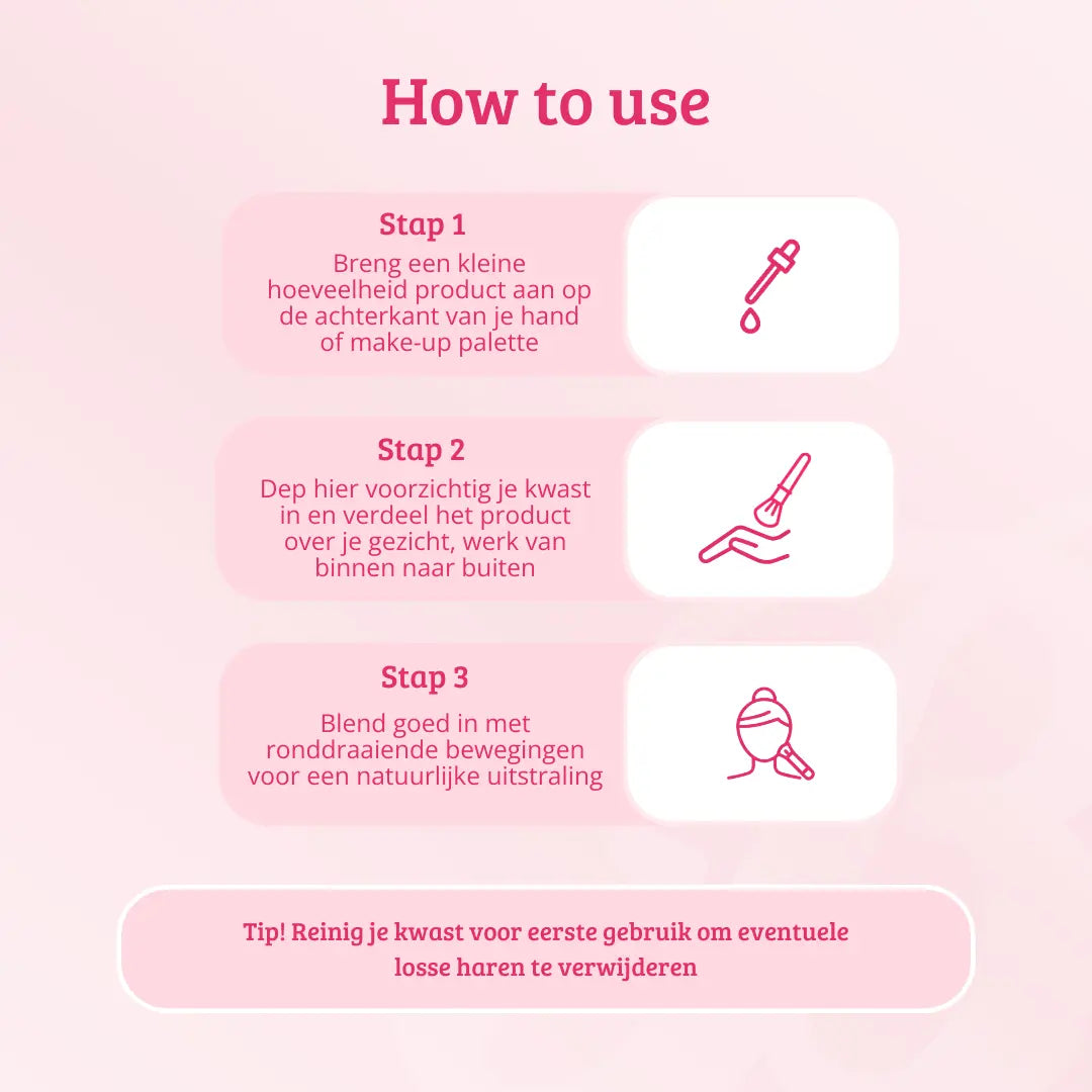 Il est essentiel de nettoyer régulièrement tes pinceaux pour garder ta peau saine et prolonger leur durée de vie. Nous conseillons un nettoyage complet au moins une fois par semaine.