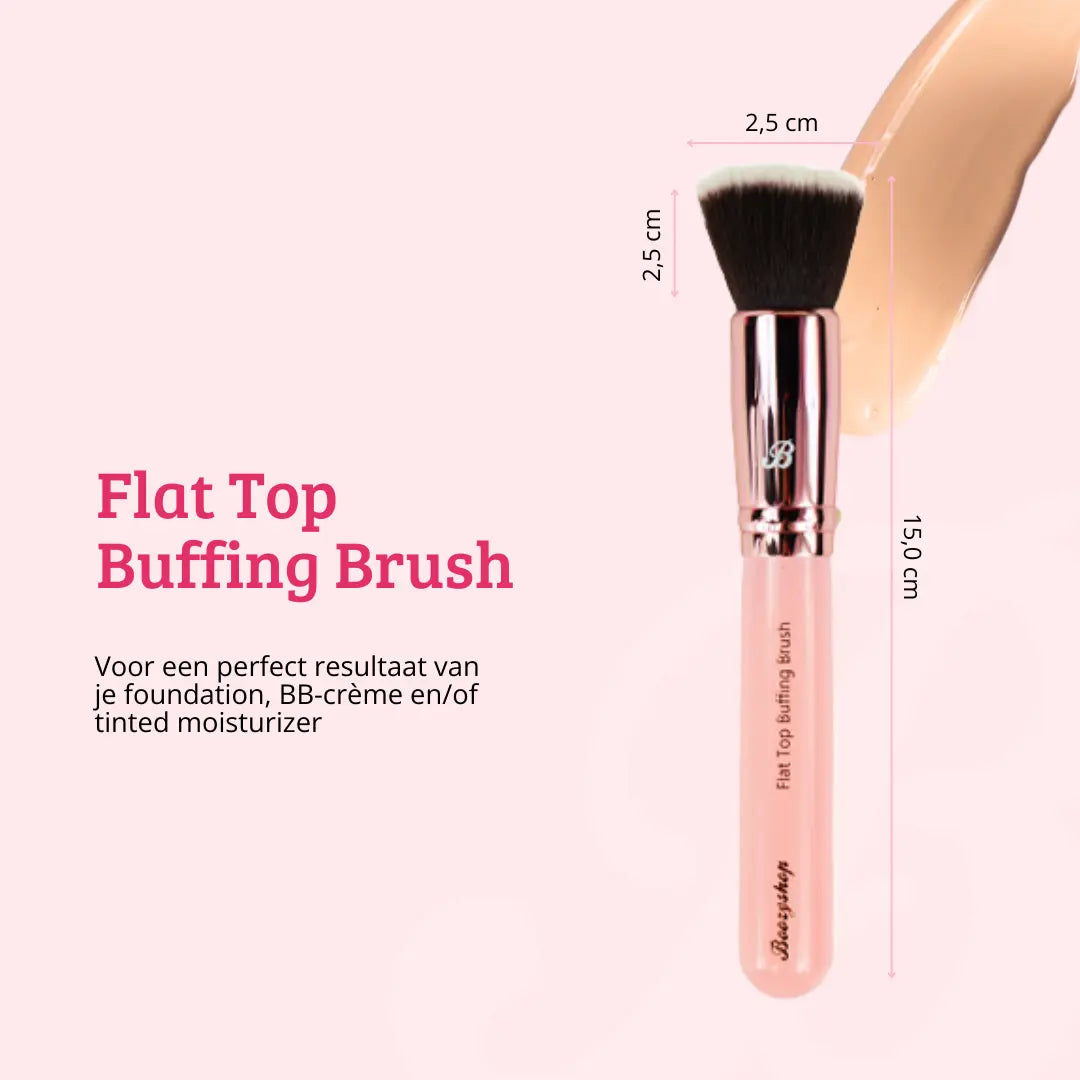 Le Boozyshop Pink & Rose Gold Flat Top Buffing Brush est le pinceau idéal pour appliquer ton fond de teint liquide. Il te permet de répartir ton fond de teint rapidement et uniformément, et il est parfait pour l’estomper. Tu peux moduler la couvrance en ajoutant des couches. Grâce à sa tête plate et ses poils bien taillés, tu obtiens facilement un effet airbrush naturel.