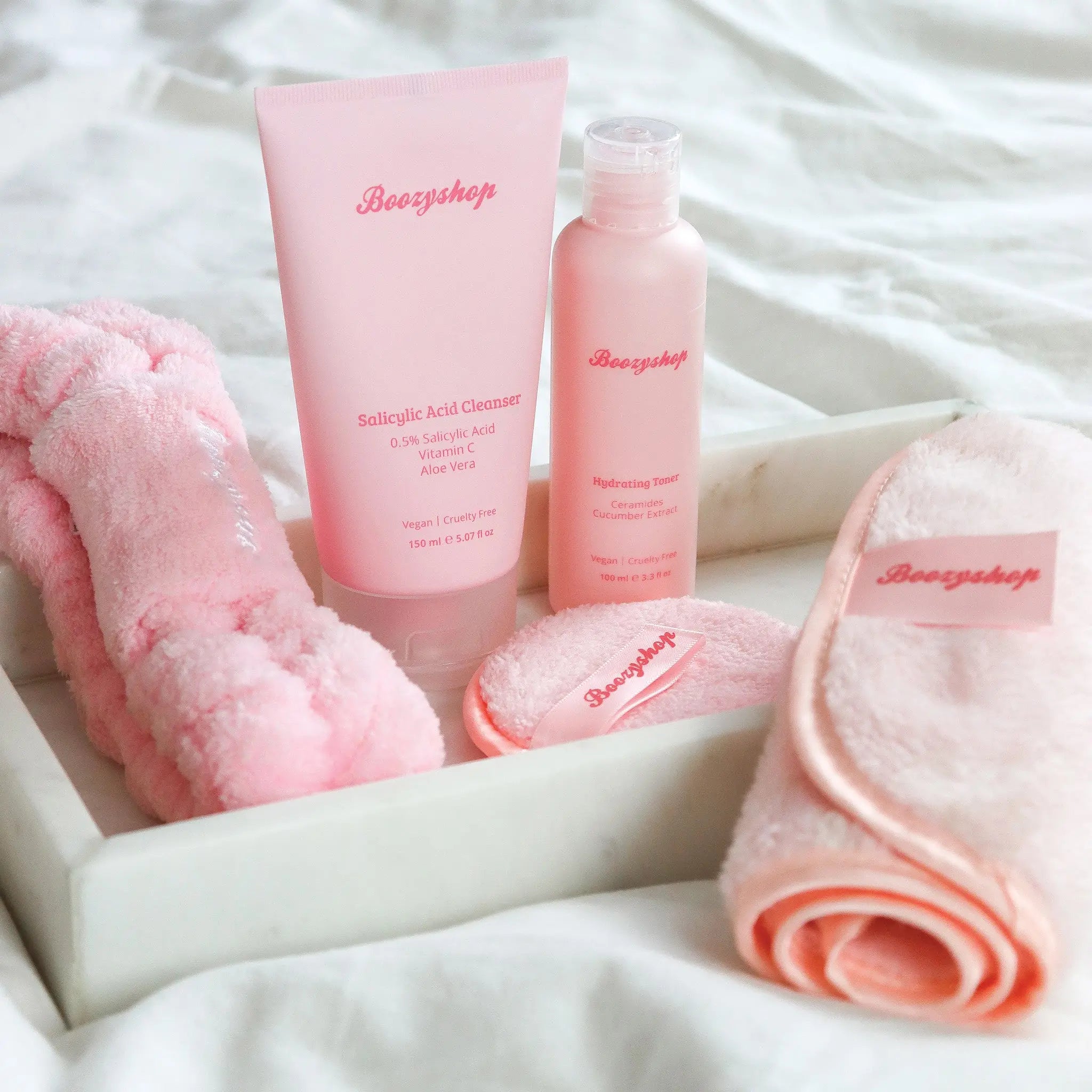 Boozyshop Hydrating Toner: Aqua (Water), Phenoxyethanol, Maltodextrin, Ethylhexylglycerin, Panthenol, Biosaccharide Gum-1, Glycerin, Trisodium Ethylenediamine Disuccinate, Cucumis Sativus (Cucumber) Fruit Extract, Sodium Lauroyl Lactylate, Citric Acid, Ceramide NP, Ceramide AP, Phytosphingosine, Cholesterol, Xanthan Gum, Carbomer, Ceramide EOP.