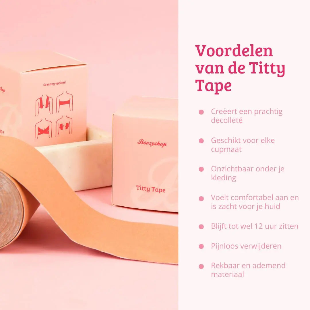 Avec Boozyshop Titty Tape vous pouvez porter votre tenue préférée sans soutien-gorge ! Notre Titty Tape est conçu pour rehausser vos seins sans les tracas d'un soutien-gorge ou d'une bralette. Vous pouvez coller ce ruban dans n'importe quelle forme et il est invisible sous vos vêtements ! Que vous portiez un décolleté plongeant, une robe dos nu ou un haut sans bretelles, Titty Tape gardera tout en place afin que vous n'ayez plus à vous soucier des bretelles de soutien-gorge qui dépassent sous ce joli haut.