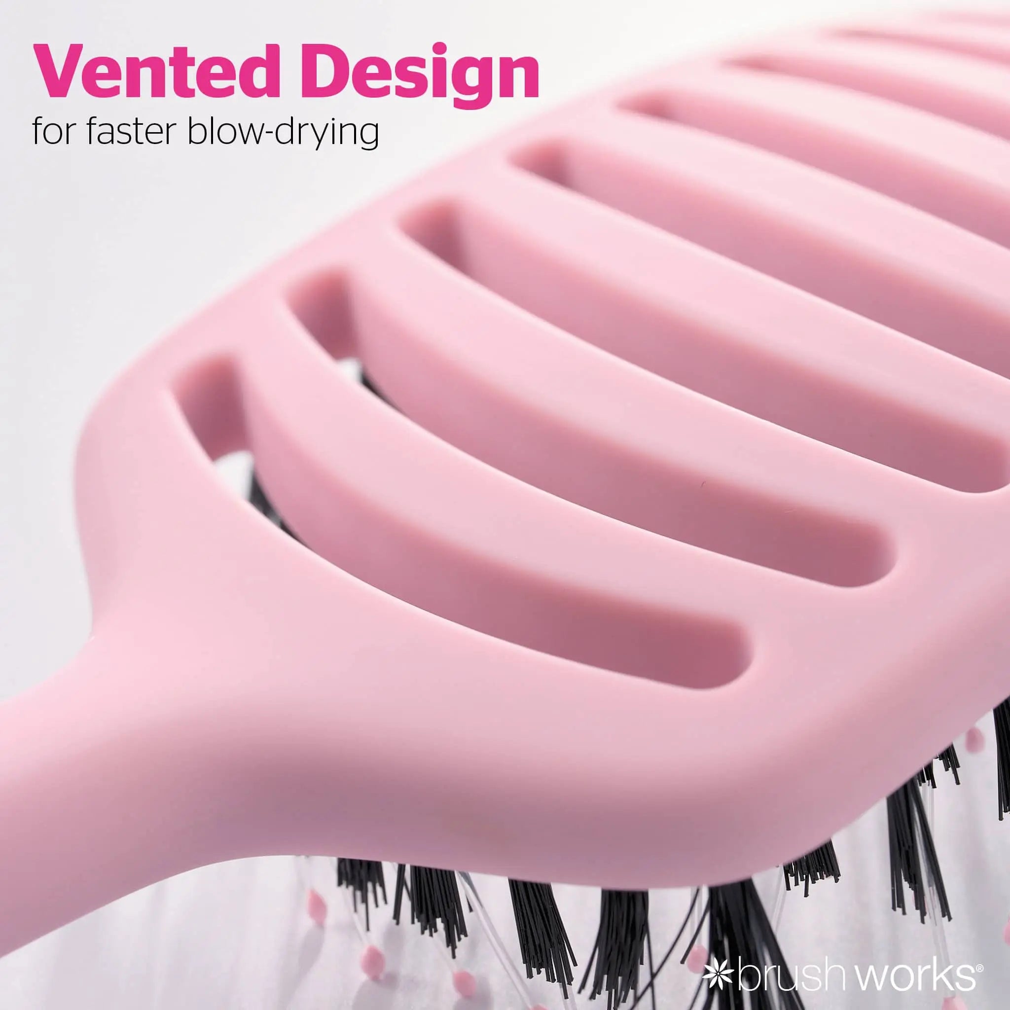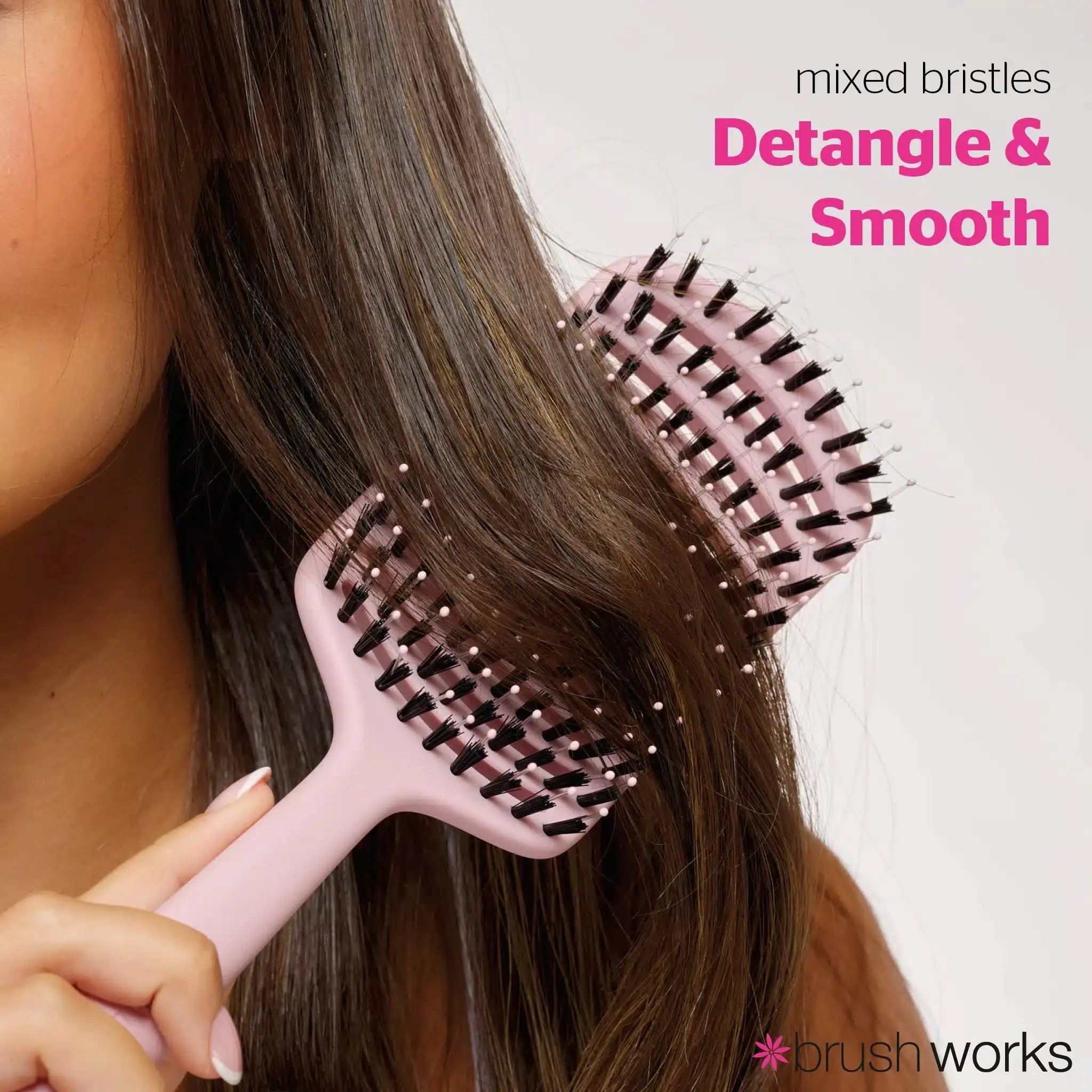 Le design ventilé assure une circulation d’air optimale pendant le brushing, ce qui permet un séchage plus rapide et réduit l’exposition à la chaleur. La combinaison de picots doux et de nylon bristles rapprochées permet de démêler les cheveux tout en les laissant lisses et brillants. Parfaite pour les cheveux fragiles et même adaptée aux extensions!