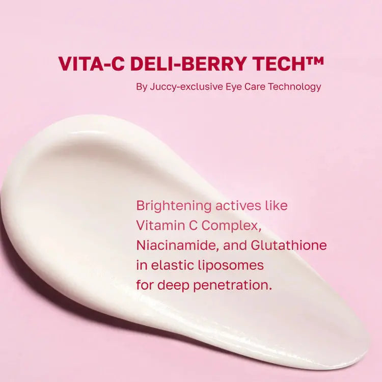 Formulée avec de la groseille indienne, des Vita-Berry Blends et la technologie innovante VITA-C Deli-BERRY Tech™, un système liposomal qui délivre en profondeur la vitamine C, la niacinamide et le glutathion, cette crème combat les taches pigmentaires et la fatigue comme une pro. Grâce à 50 000 ppm de beurre de karité et trois types de peptides, le contour de l'œil devient plus lisse et plus ferme. En seulement 4 semaines, votre regard paraît visiblement plus frais, lumineux et jeune.