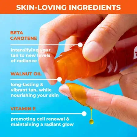 Le puissant mélange d’huile de carotte hautement concentrée et d’huiles naturelles stimule le processus de bronzage, tandis que le bêta-carotène intensifie et prolonge votre teint doré. Bonus : la formule est vegan, sans parabènes et ne colle pas.