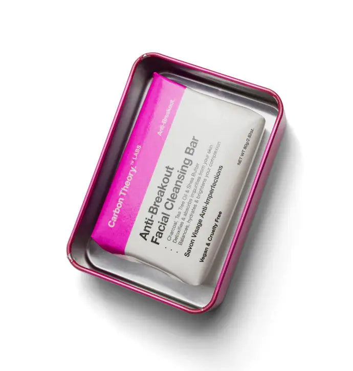 Le Carbon Theory Anti-Breakout Tin & Bar est votre solution compacte contre les imperfections – idéale en déplacement ! Ce set de voyage contient un mini savon nettoyant avec la formule emblématique Anti-Breakout de Carbon Theory, emballé dans une boîte en aluminium approuvée par la TSA. Que vous soyez en voyage ou ayez besoin d’une retouche rapide : ce savon détoxifie, purifie et hydrate sans tracas.
