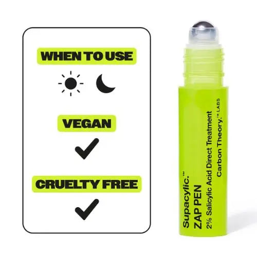 Le Carbon Theory Salicylic 2% Zap Pen est votre solution rapide pour un teint impeccable en déplacement. Ce stylo pratique est infusé avec 2% d'acide salicylique, parfait pour traiter directement les boutons et les imperfections.