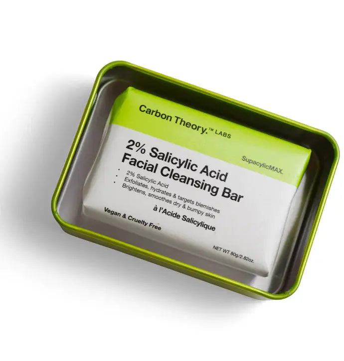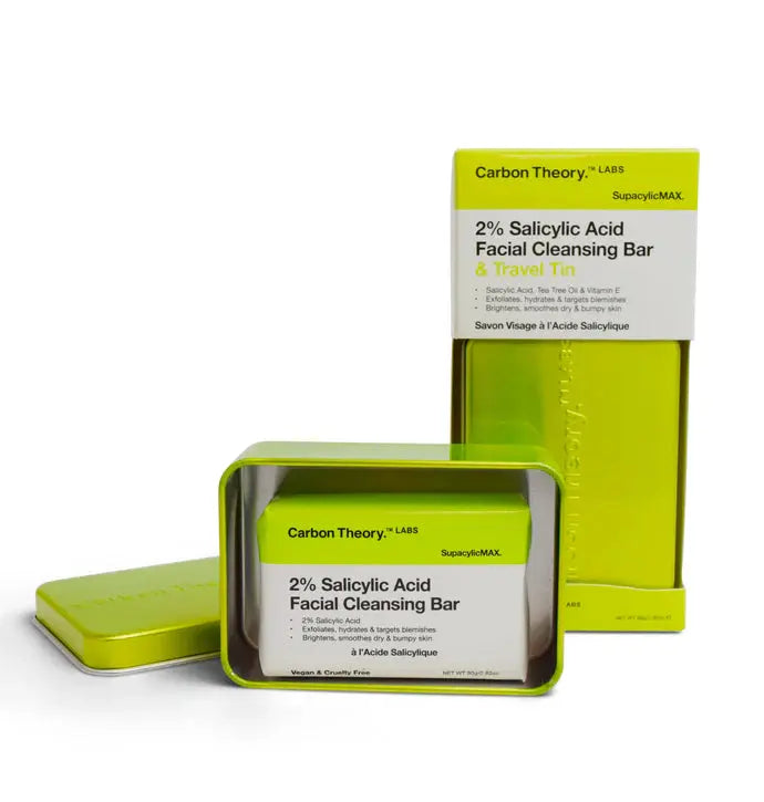 Le Carbon Theory SupacylicMax Tin & Bar est votre puissant allié de voyage contre les imperfections ! Ce set de voyage compact contient la barre nettoyante iconique avec 2 % d'acide salicylique au format exclusif de voyage, présentée dans une élégante boîte en aluminium approuvée par la TSA. Parfait à emporter ou pour les vacances !