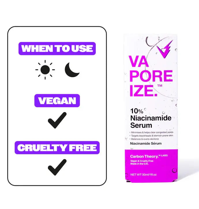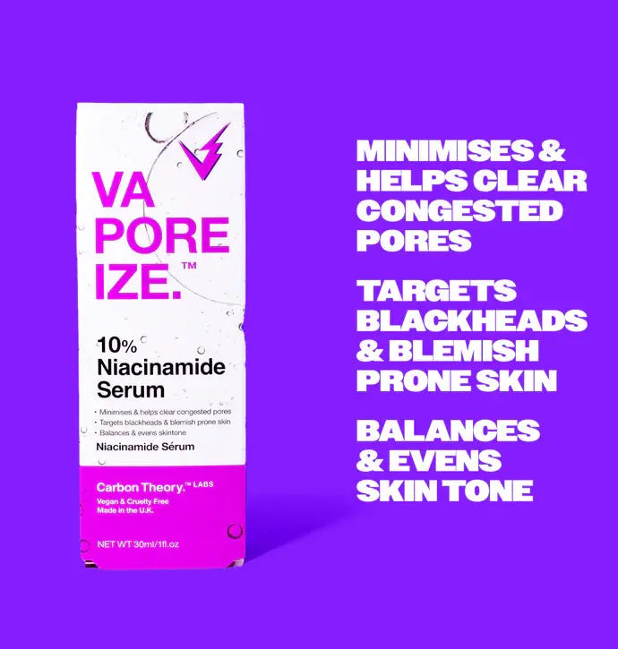 Le Carbon Theory VaPOREize 10% Niacinamide Serum est votre boost quotidien pour une peau claire et équilibrée. Avec 10 % de niacinamide et 1 % de zinc, ce sérum aide à purifier les pores obstrués, réduire les points noirs et unifier le teint – sans surcharger la peau. Parfait pour une utilisation quotidienne, même pour les peaux sensibles ou mixtes.