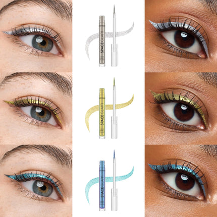Le Catrice Space Glam Liquid Effect Eyeliner 030 Cosmic Chrome est l’eyeliner parfait pour un look maquillage unique et audacieux. Cet eyeliner offre une combinaison de couleurs fascinante, allant du violet chromatique au bleu clair, avec une finition métallique ultra-brillante. Grâce à sa pointe pinceau précise, vous pouvez tracer une ligne nette et impeccable en un seul geste.