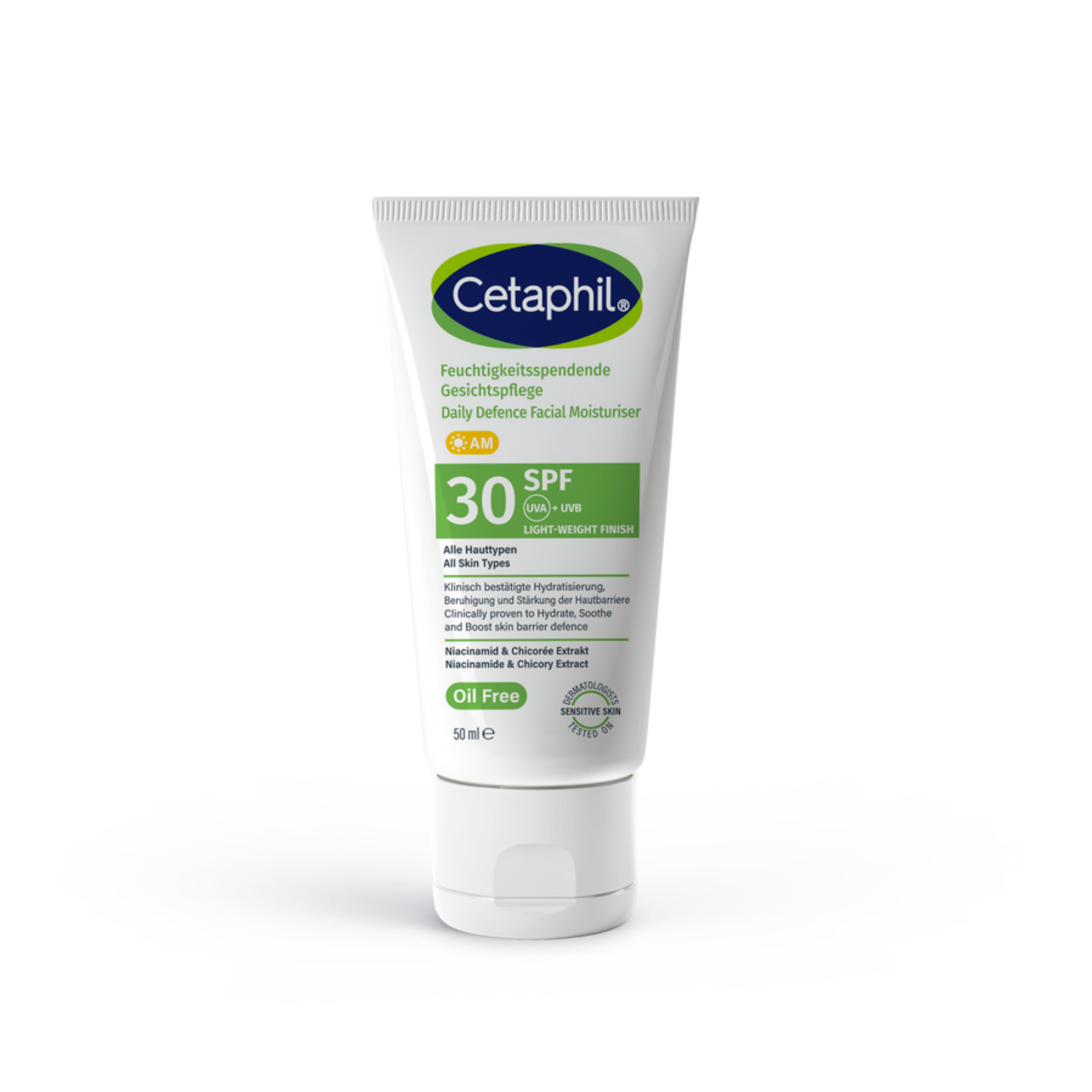Le Cetaphil Daily Defence Facial Moisturiser SPF30 est une crème de jour puissante mais douce qui hydrate votre peau au quotidien et la protège des rayons UV nocifs. Grâce au SPF30 à large spectre, vous êtes bien protégé contre les UVA et UVB, tout en nourrissant intensément votre peau. La formule est légère, pénètre rapidement et ne laisse pas de film blanc, idéale pour tous les types de peau, même les peaux sensibles.