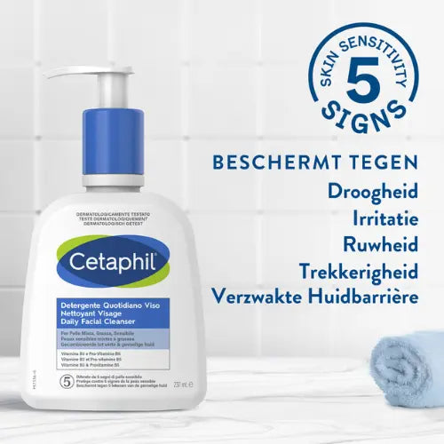 Dorlotez votre peau avec le mélange dermatologiquement soutenu de vitamine B3, de provitamine B5 et de glycérine hydratante, qui agissent ensemble pour renforcer la barrière cutanée. Le nettoyant quotidien pour le visage Cetaphil a été développé en collaboration avec des dermatologues, des scientifiques et des experts, en mettant l'accent sur la protection contre les cinq signes de la peau sensible : peau sèche, irritation, peau rugueuse, peau tiraillée et barrière cutanée affaiblie. Donnez à votre peau le soin qu'elle mérite et profitez d'un teint frais et propre avec le nettoyant quotidien pour le visage Cetaphil !
