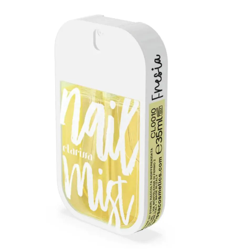 Le Clarissa Cosmetics Nail Mist Fresia est un produit révolutionnaire qui parfume vos mains et vos ongles avec un parfum raffiné tout en les hydratant, les protégeant et les nourrissant. Ce parfum pour les mains et les ongles unisexe allie luxe et soin grâce à des ingrédients actifs comme la kératine, le panthénol et l'extrait de bambou. Parfait pour ceux qui recherchent une alternative pratique et originale à la crème pour les mains.