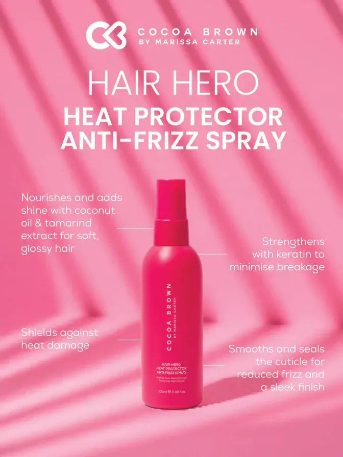 Le Cocoa Brown Hair Hero Heat Protection Anti Frizz Spray est ton allié ultime pour des cheveux lisses, brillants et sans frisottis. Ce spray leave-in léger protège tes longueurs contre la chaleur tout en domptant les fly-aways pour une finition digne d’un salon: à chaque utilisation.