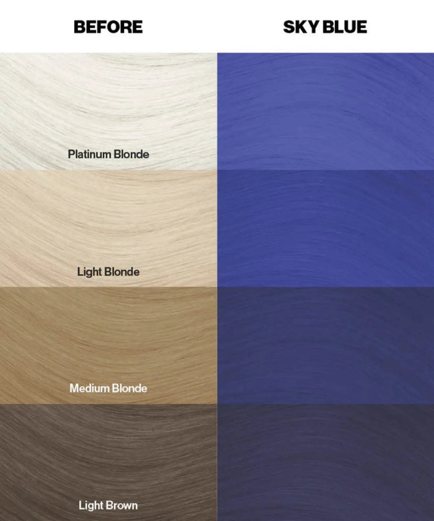Sky Blue fonctionne au mieux sur des cheveux clairs ou décolorés et garantit une finition uniforme et saisissante. Parfaite pour les esprits créatifs qui aiment la couleur et veulent créer leur teinte idéale. Il est temps de capter tous les regards !