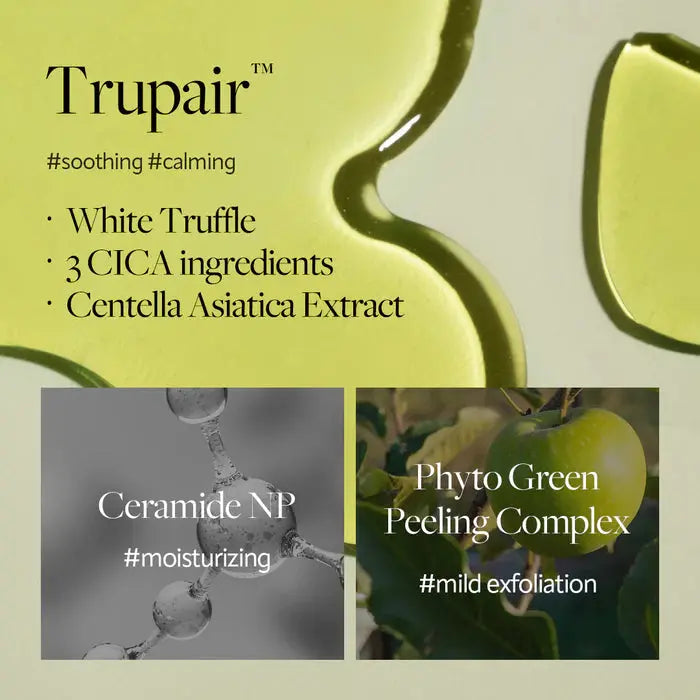 Water, Glycerin, Disodium Cocoamphodiacetate, Coco-Glucoside, Lauryl Glucoside, Sodium Chloride, TEA-Cocoyl Glutamate, Tuber Magnatum Extract, Centella Asiatica Extract, Madecassoside, Asiaticoside, Asiatic Acid, Acrylates/C10-30 Alkyl Acrylate Crosspolymer, Citric Acid, Chlorphenesin, Melaleuca Alternifolia Extract, Ethylhexylglycerin, Xanthan Gum, Butylene Glycol, Carica Papaya Fruit Extract, Pyrus Malus (Apple) Fruit Extract, Prunus Mume Fruit Extract, Vitis Vinifera (Grape) Fruit Extract, Panthenol, Melia Azadirachta Leaf Extract, Saccharide Isomerate, 1,2-Hexanediol, Melia Azadirachta Flower Extract, Caramel, Ceramide NP, Myristic Acid, Stearic Acid, Sodium Citrate, Palmitic Acid, Arachidic Acid, Lauric Acid, Oleic Acid, Lavandula Angustifolia (Lavender) Oil, Linalool.