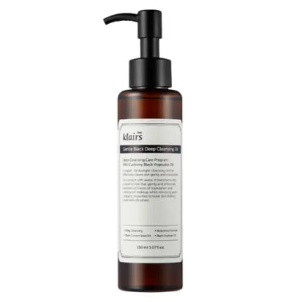 La Dear, Klairs Gentle Black Deep Cleansing Oil est une huile nettoyante en profondeur qui convient aux peaux grasses et mixtes et garantit que le maquillage et la saleté sont éliminés de votre peau.