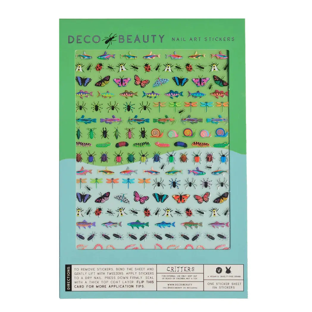 Les Deco Beauty Nail Art Stickers Critters donnent à votre manucure une touche ludique et créative. Cette feuille de stickers est remplie de jolis critter designs, allant de petits animaux terrestres adorables à des créatures marines joyeuses. Parfait pour ajouter une touche fun à vos ongles.