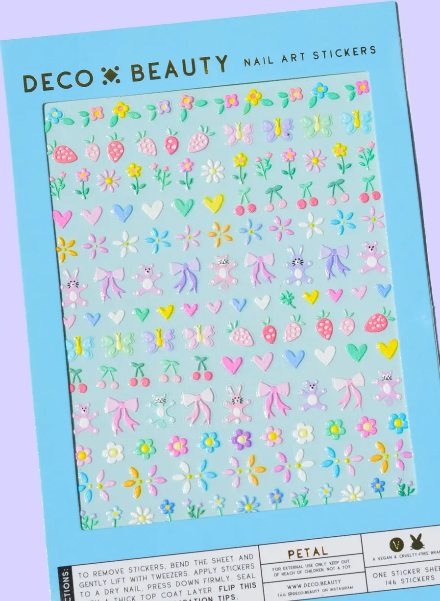 Les Deco Beauty Nail Art Stickers Petal sont un rêve pour toutes celles et ceux qui adorent les fleurs et les vibes pastel. Cette feuille est remplie de designs floral adorables qui donnent à votre manucure un look doux, romantique et ultra cute. Parfait pour un look girly frais et totalement tendance.
